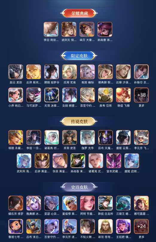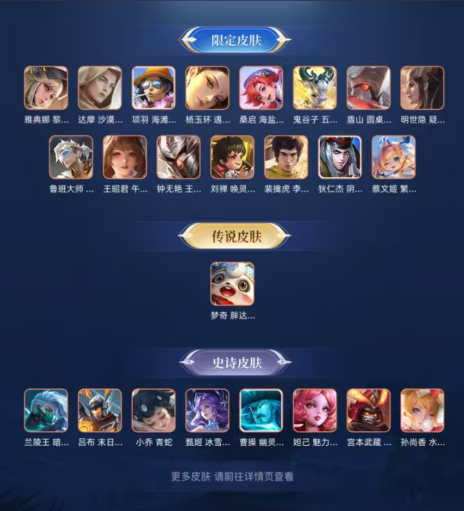 v10、12水539皮、死亡执政官、刘备星传说时之思念、小兵皮肤大耳狗甜茶、瑶无双真我赫兹、愿照·九州拓、怪盗基德、画中仙、至尊宝、凤求凰、神威、天魔缭乱