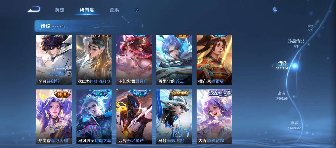 无双v10,567个皮肤,5典藏,10无双,111传说皮肤,带妹神器