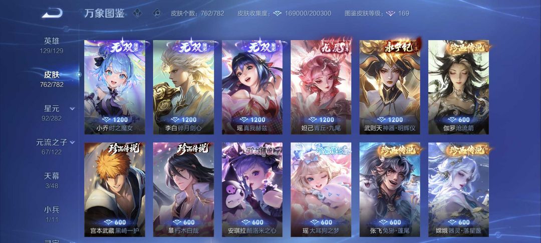 【非云直上】537满皮满典藏12星元◎鲁班新皮◎虞姬星元◎天使星元◎白金战神◎妲己绝版星元