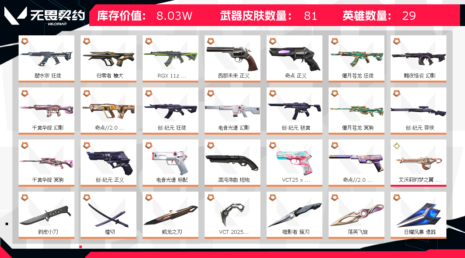 • 皮肤资产价值: 80290