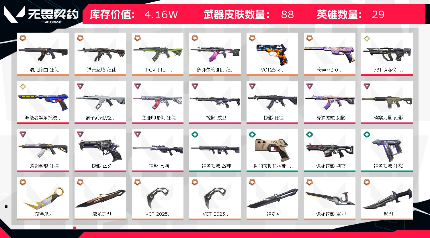 • 皮肤资产价值: 41620