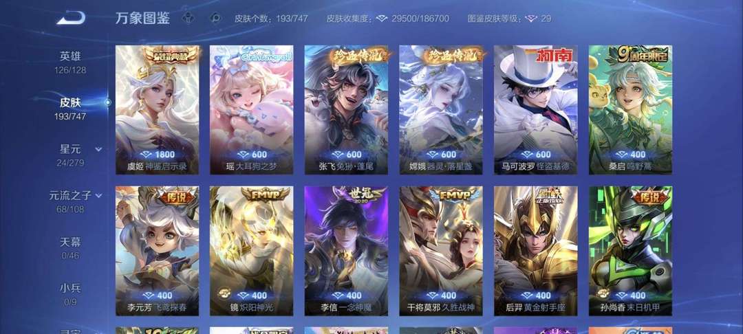 v10、12水539皮、死亡执政官、刘备星传说时之思念、小兵皮肤大耳狗甜茶、瑶无双真我赫兹、愿照·九州拓、怪盗基德、画中仙、至尊宝、凤求凰、神威、天魔缭乱