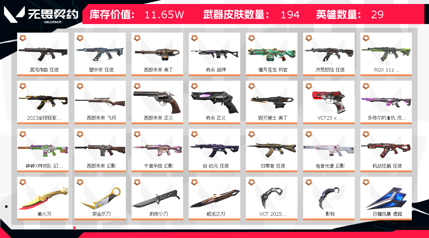 22-23-25冠军套❤️颗秒狂徒❤️离火刃❤️西部未来❤️多米儿复仇套❤️剥皮小刀❤️神话挂饰❤️