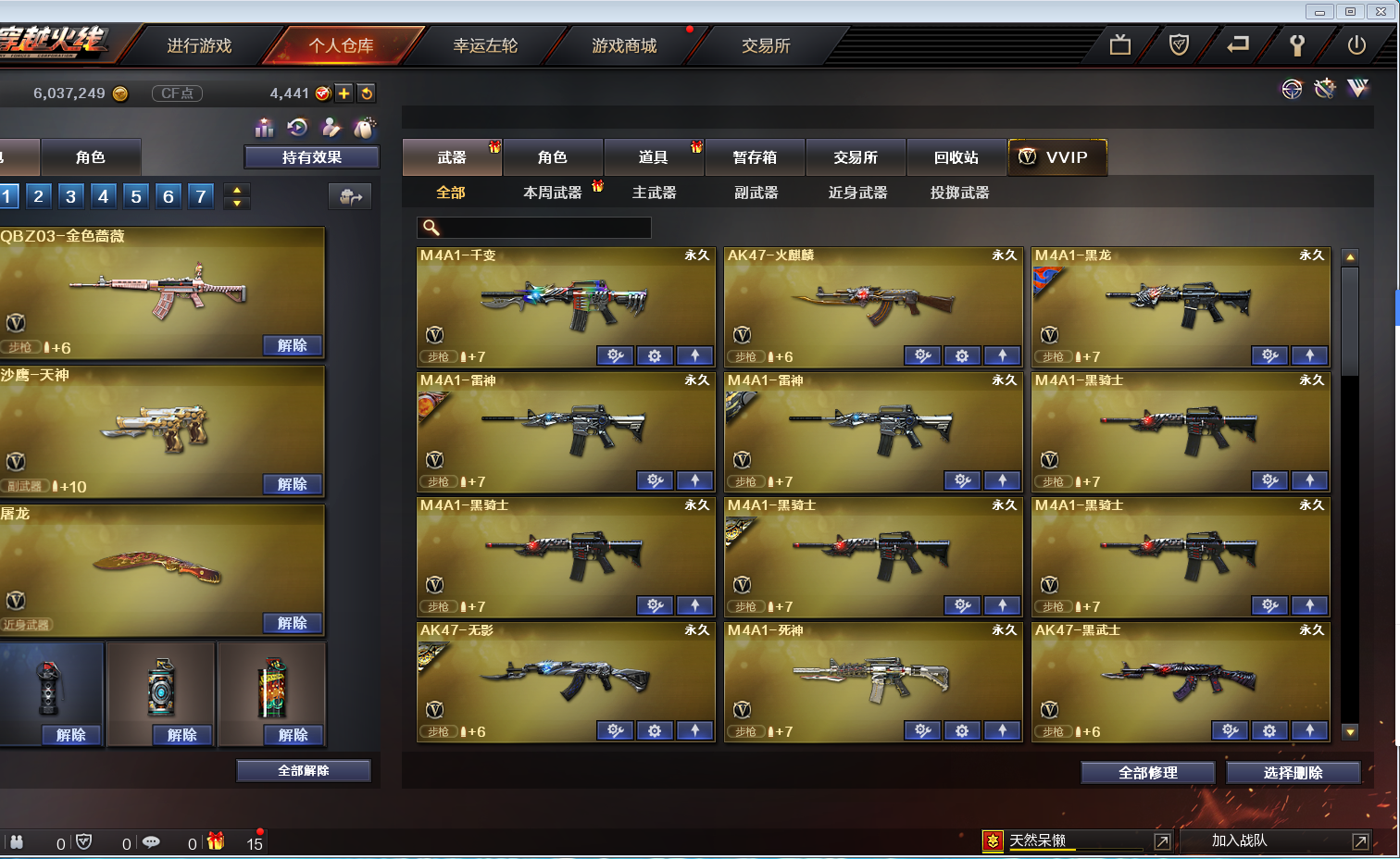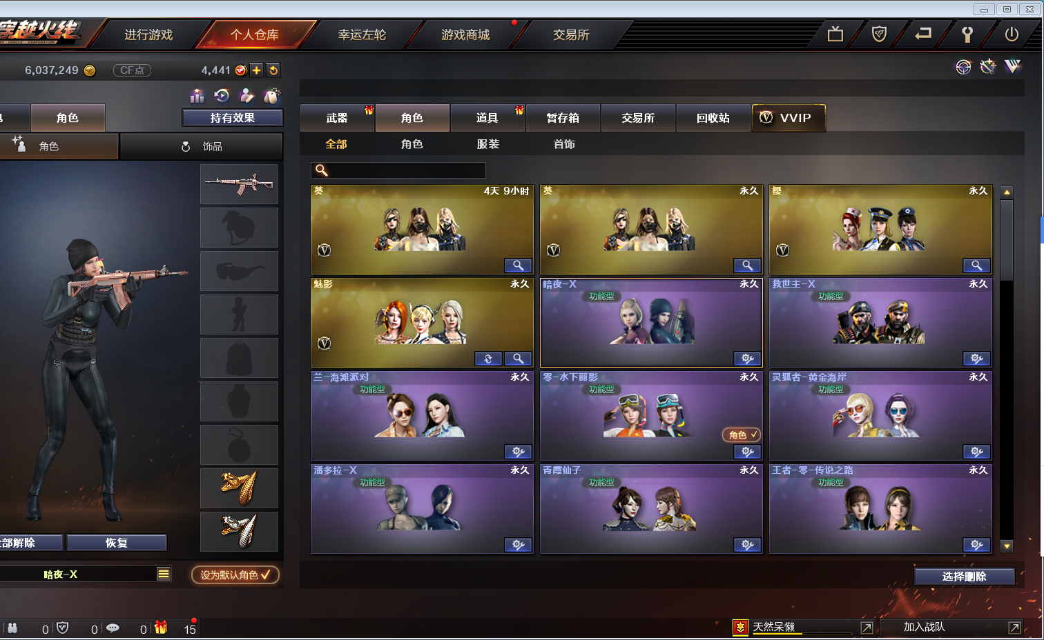【温馨提示】信誉分不足时请在新版大厅匹配游戏! 【请租客爱护此号,当成自己号玩,喜欢请收藏,已经刷好的属性,请勿更换,感谢】 【步枪系列】M4A1-雷神*2-黑骑士*4/千变/死神/武圣/死血*2/HK417-朱雀/猎神/玫瑰精灵/十二生肖 AK系列-Ak47火麒麟-火麒麟-AK12-天启-AN94-超新星/机械迷城/黑鲨/烈龙*4/猩红传说 【狙击枪】AWM-天龙/裁决Barrett--毁灭/极光*3/金色蔷薇-恶棍-翔龙 【辅助枪】 RPK-盘龙 *7/ 加特林炼狱*5/汤姆逊-烈龙-*7斯太尔-恶棍死亡之眼/汤姆逊-AA12-雷霆/征服者/激光毁灭者III/神圣爆裂者III/迷你生化手雷/死亡之眼/ 斯太尔蝴蝶 / 六烈六盘 / 六盘六烈 / 6烈6盘 / 6盘6烈 /生化号 / 爆破号 / 御-炼狱-女娲 【角色】暗夜-X樱/兰/零/葵/救世主X铁骑荣耀/雪莉杨/青霞仙子/灵狐者-黄金海岸/陈龙野/娟娟【佣兵觉醒 无需换弹7秒/生化觉醒 】捕食者之眼 【副武器】闸释者III-修罗*7-摸金校尉-COP-旗袍沙鹰-天神*2武圣/MAC-涂鸦 【近身武器】麒麟刺*3/ 龙啸*/ 屠龙 /擎天*2/王者之啸/王者之击/金箍棒/轻型军用手斧-镜 【投掷武器】高爆手雷SS/迷你生化手雷,/凤凰之息/惨叫鸡高爆手雷/肥皂手雷 【通用道具】双1-7背包 / 手枪弹匣 / 金蛇戒 / 狙击枪弹夹 / 魔龙戒 / 散弹枪弹夹 / 圣龙戒 / 挑战弹夹 / 银蛇戒 / 防弹头盔 / 烟雾保护头盔 / 防弹衣 / C4工具钳 / 手雷包 / 步枪弹匣 / 冲锋枪弹匣 / 机枪弹匣 / 闪光护目镜/超级护目镜/超级背包/透明头盔/透明护目镜/ 超级对讲机 /新彩色昵称/C4.红龙/击杀图标万圣/CFS/恶灵/金色击杀 【生化专用道具】永久生化弹夹/服/幽灵之刃)/灵魂忍者/绿巨人/变异宝贝/ 迷你生化手雷 /不退包 肩膀佩戴超级对讲机(榴弹3/22) 【皮肤系列】雷神-虎将/战神-粉色甜心皮肤/毁灭-冠军之怒/战神-金章皮肤/天龙-能量核心/黑骑士耀金皮肤/火麒麟雷神/无影耀金皮肤/雷神-能量核心/黑龙/极光/雷神暗月 南部战区】广东一区、广东二区、广东三区、广东四区、广西一区、江西一区、南方大区、湖南一区、湖南二区、湖北一区、湖北二区(CF相同战区进入相同频道可以一起玩);RPK-盘龙,QBZ03-金色蔷薇,M200-幻神,Scar Light-白虎,
