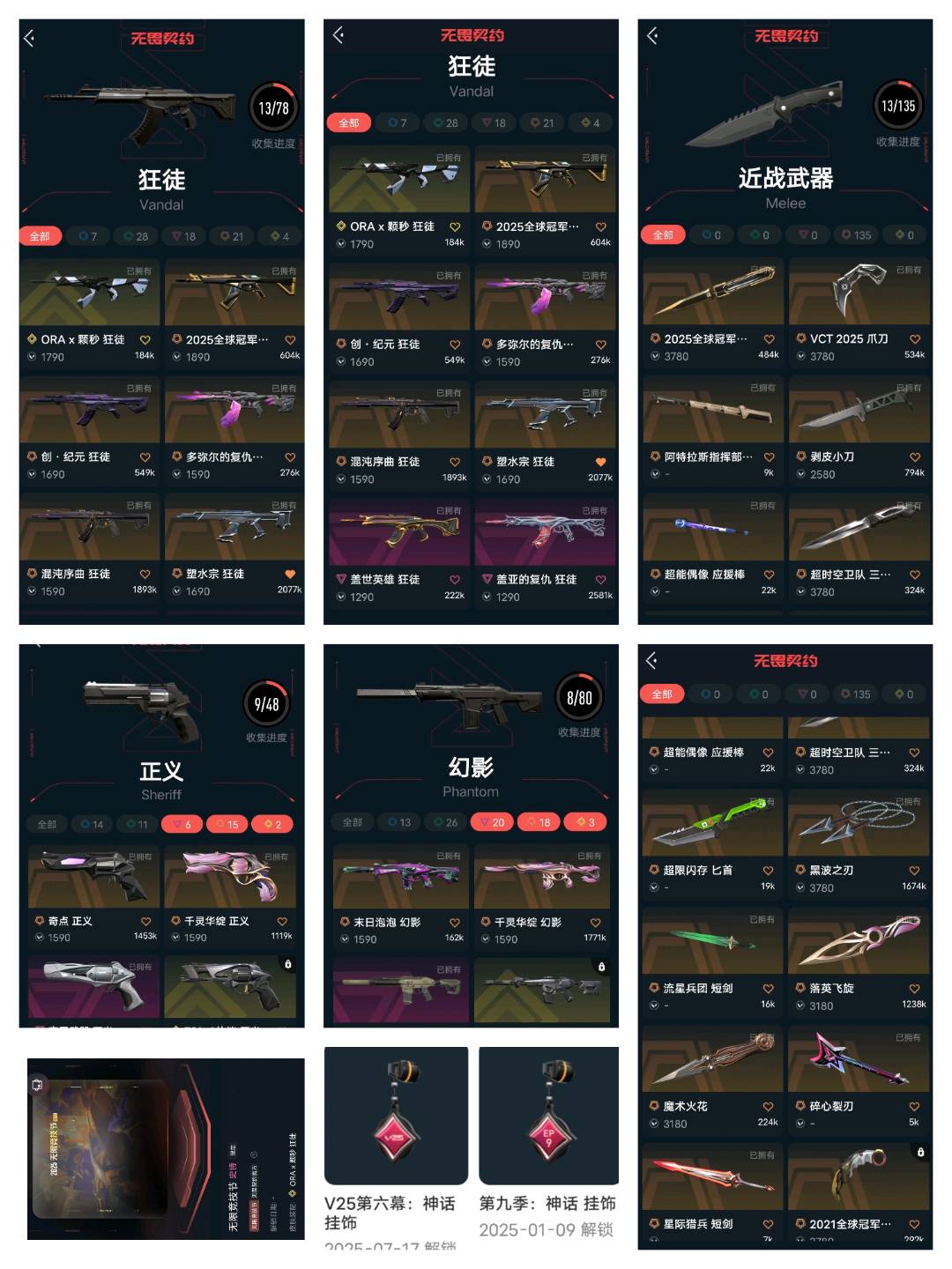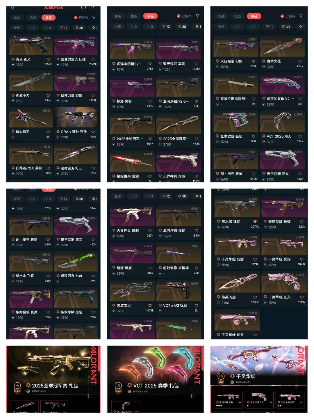 冻结看wg;黑波之刃,剥皮小刀,VCT 2025 爪刀,起源 雄鹿,盖亚的复仇 狂徒,侦察力量 幻影,天界神兵 戍卫,