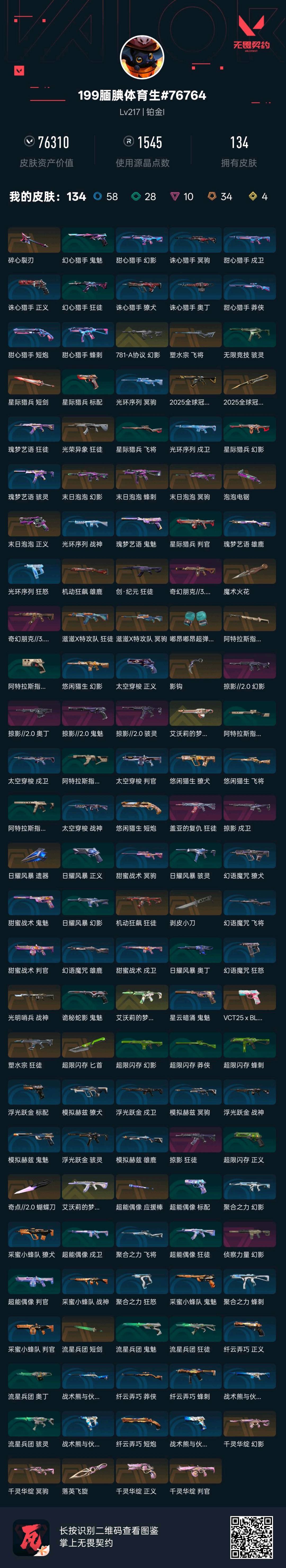 • 武器皮肤数量: 134