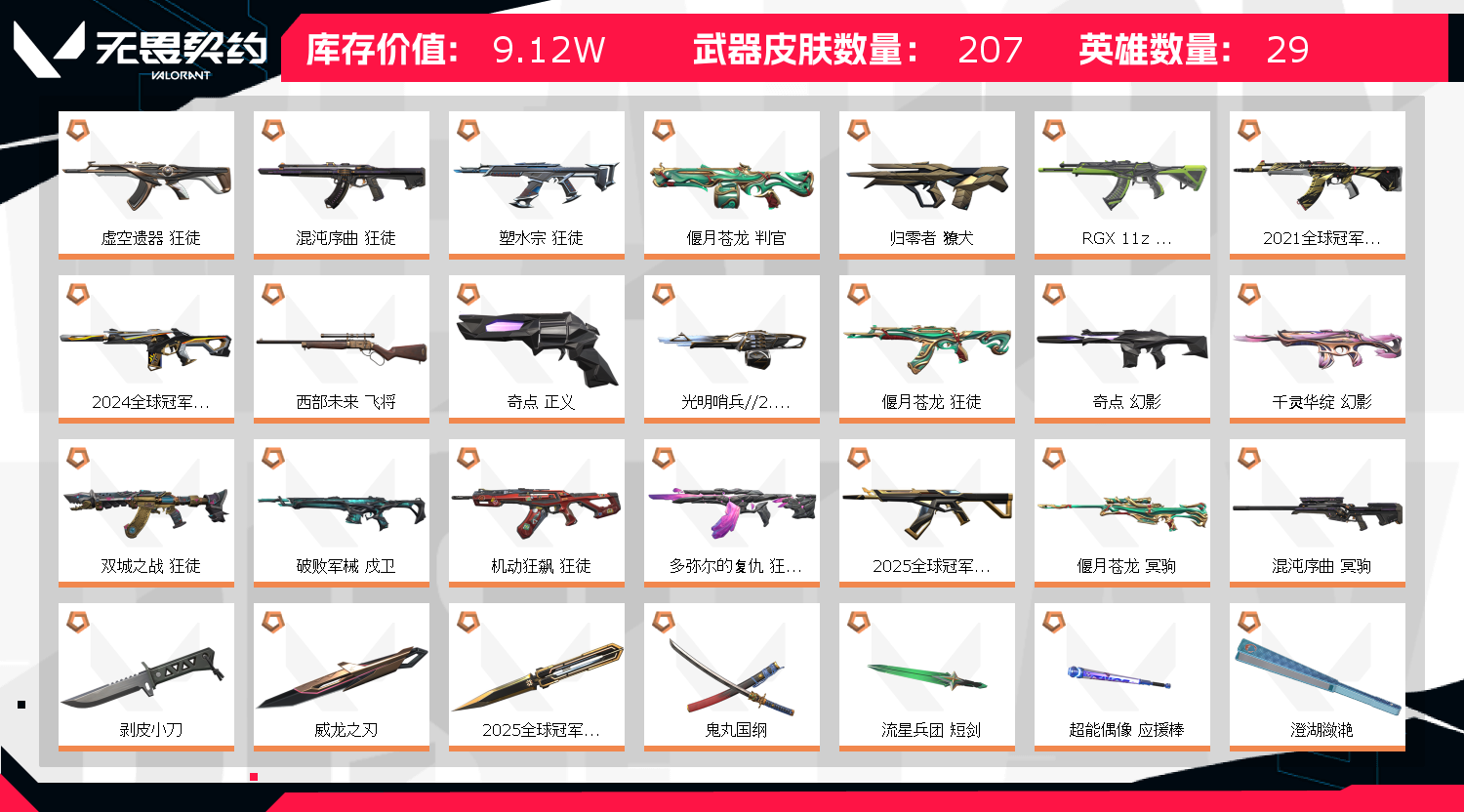 • 皮肤资产价值: 91200