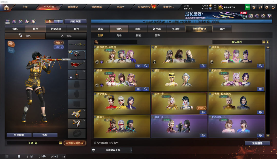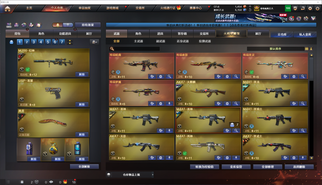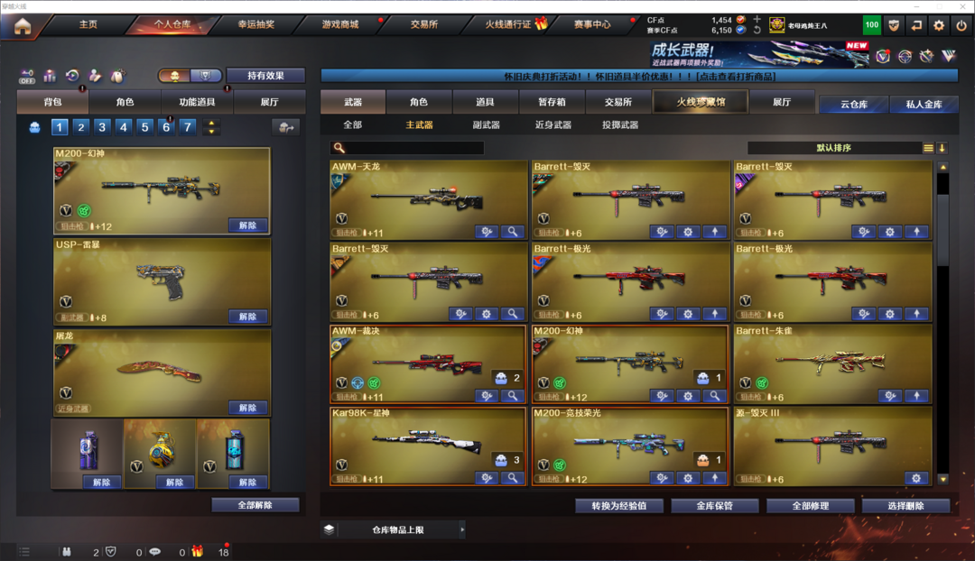 王者武器:炼狱-悦蓝-觉醒版;烟雾弹-雷霆王者-觉醒版;王者龙血-觉醒版;王者之决-觉醒版;QBZ-03-王者蔷薇-觉醒版;王者风势-觉醒版;王者之幻-觉醒版;王者冰魄-觉醒版;王者之击-觉醒版;王者青龙;高爆手雷-雷霆王者;王者之心-觉醒版;王者蔷薇-觉醒版;炫金骑士;COP 357-雷霆王者-觉醒版;闪光弹-雷霆王者-觉醒版;炫金火麒麟;王者之锋-觉醒版;王者之怒-觉醒版;炫金雷神;炫金黑龙;炫金无影 英雄武器:黑武士-锦绣游龙;黑骑士-海王;烈火-动感闪耀;屠龙-动感闪耀;天神-动感闪耀;手雷-动感闪耀;Barrett-毁灭;唐刀-神工天巧;无影-神兵利器;传说夜影;白虎-电玩蓝兔;Barrett-暗月传说;汤姆逊-烈龙;M4A1-武圣;Glock18-武圣;传说暗裔;闪光弹-竞技荣光;柯尔特-竞技荣光;USP-雷暴;M200-竞技荣光;烟雾弹-竞技荣光;高爆手雷-竞技荣光;擎天-竞技荣光;AK47-无影;M4A1-龙血;传说梦魇;COP-堕天神;烟雾弹-夜魔;高爆手雷-夜魔;闪光弹-夜魔;马来剑-夜魔;屠龙;Barrett-朱雀;RPK-盘龙;加特林-炼狱;荣耀世冠-柯尔特;荣