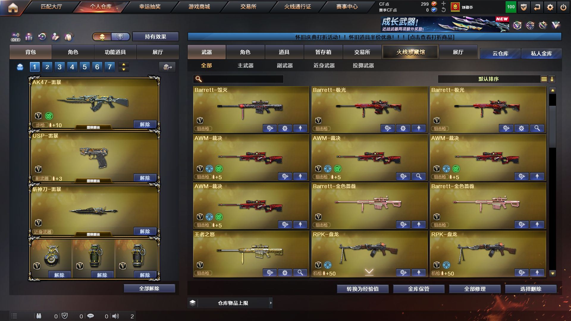 《裁决》《usp雷暴 cop旗袍》《雷暴套》《qbz金色蔷薇》《烈火》《毁灭》《火麒麟》《雷神》《黑骑士》《黑武士》《黑龙》《6盘6烈 斯泰尔蝴蝶》《火麒麟灵狐》《职业选手》《超级背包》《毁灭音效卡》《毁灭荣耀之怒》《a背包套装扩展券》;USP-雷暴,RPK-盘龙,QBZ03-金色蔷薇,