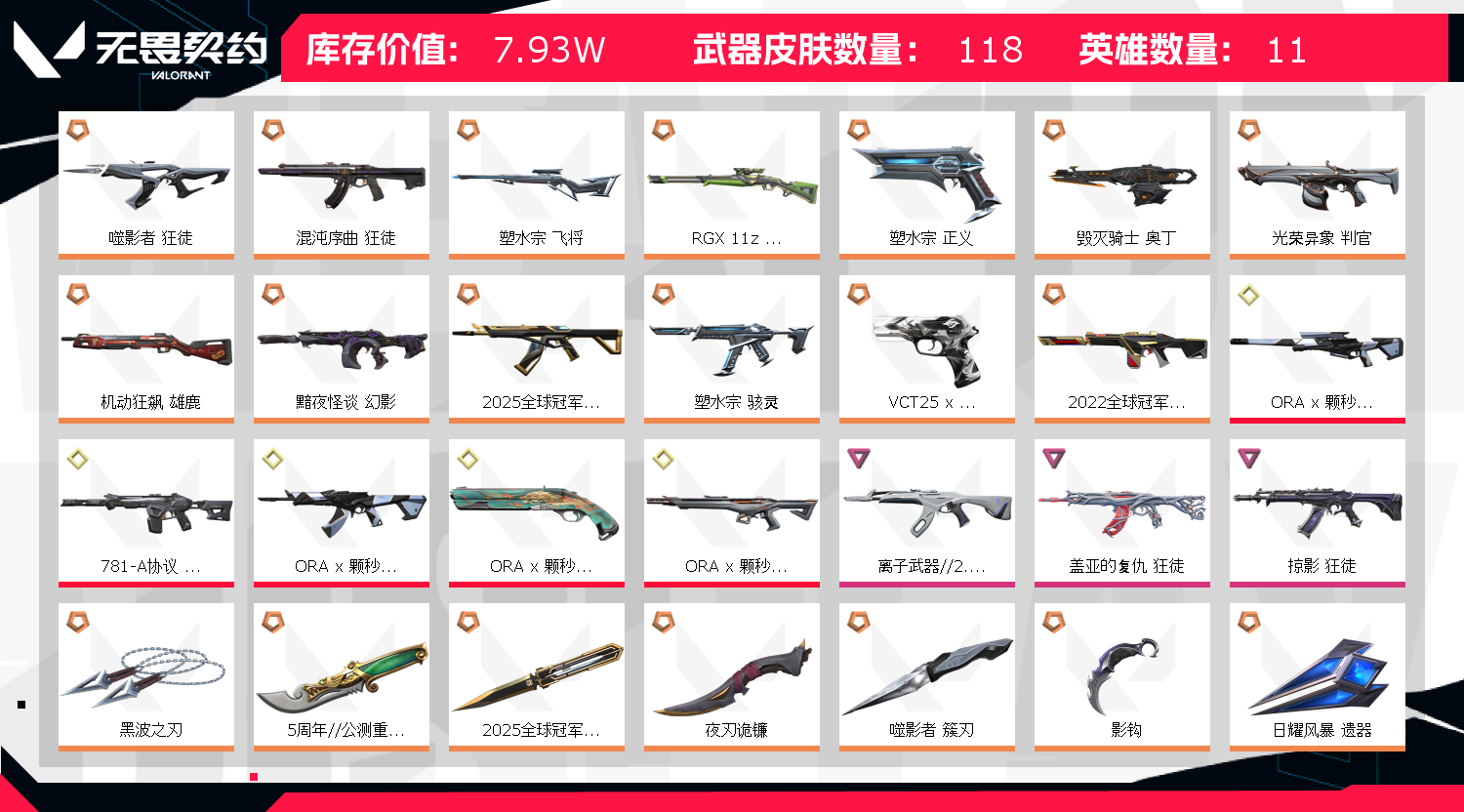 • 武器皮肤数量: 118