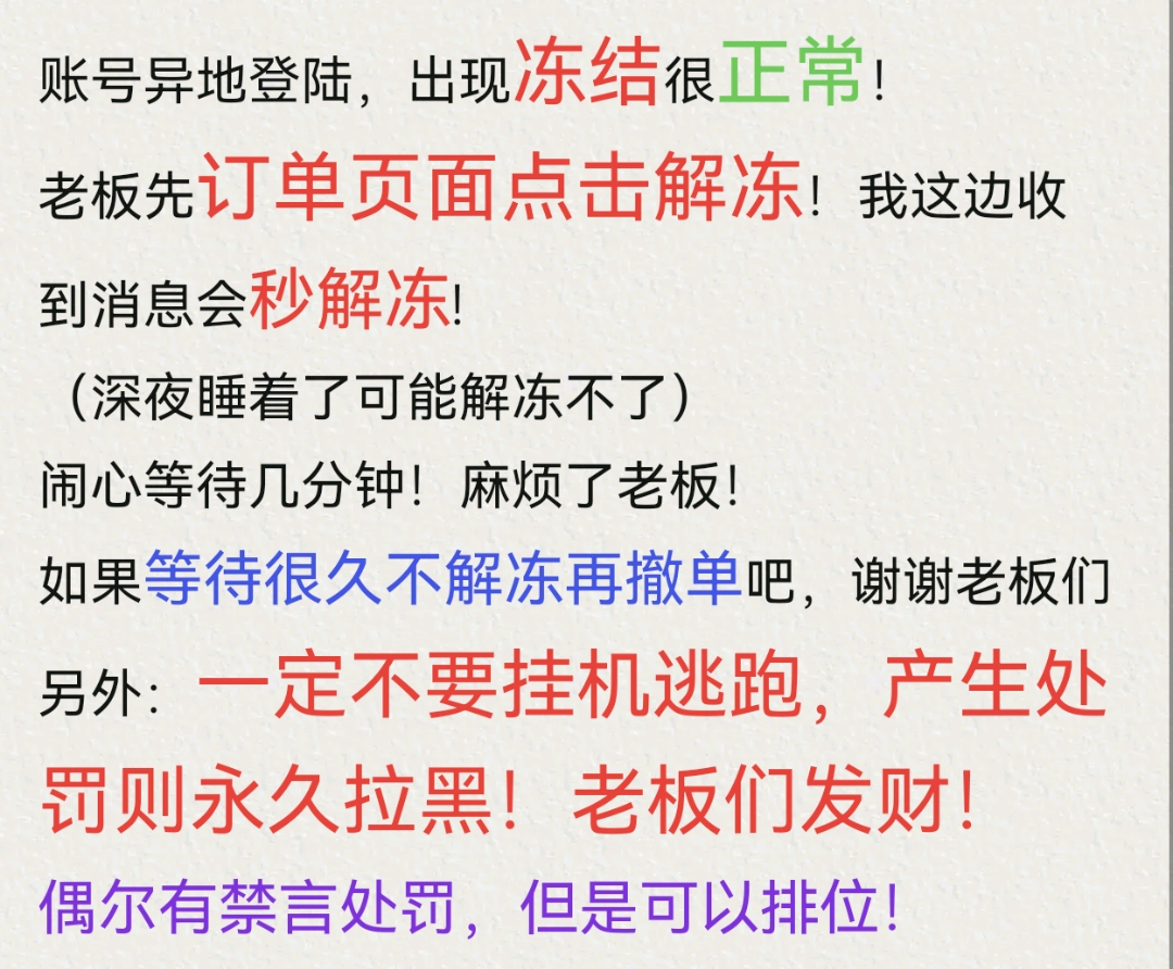 • 租号押金:0.0(订单结束后24小时退还)