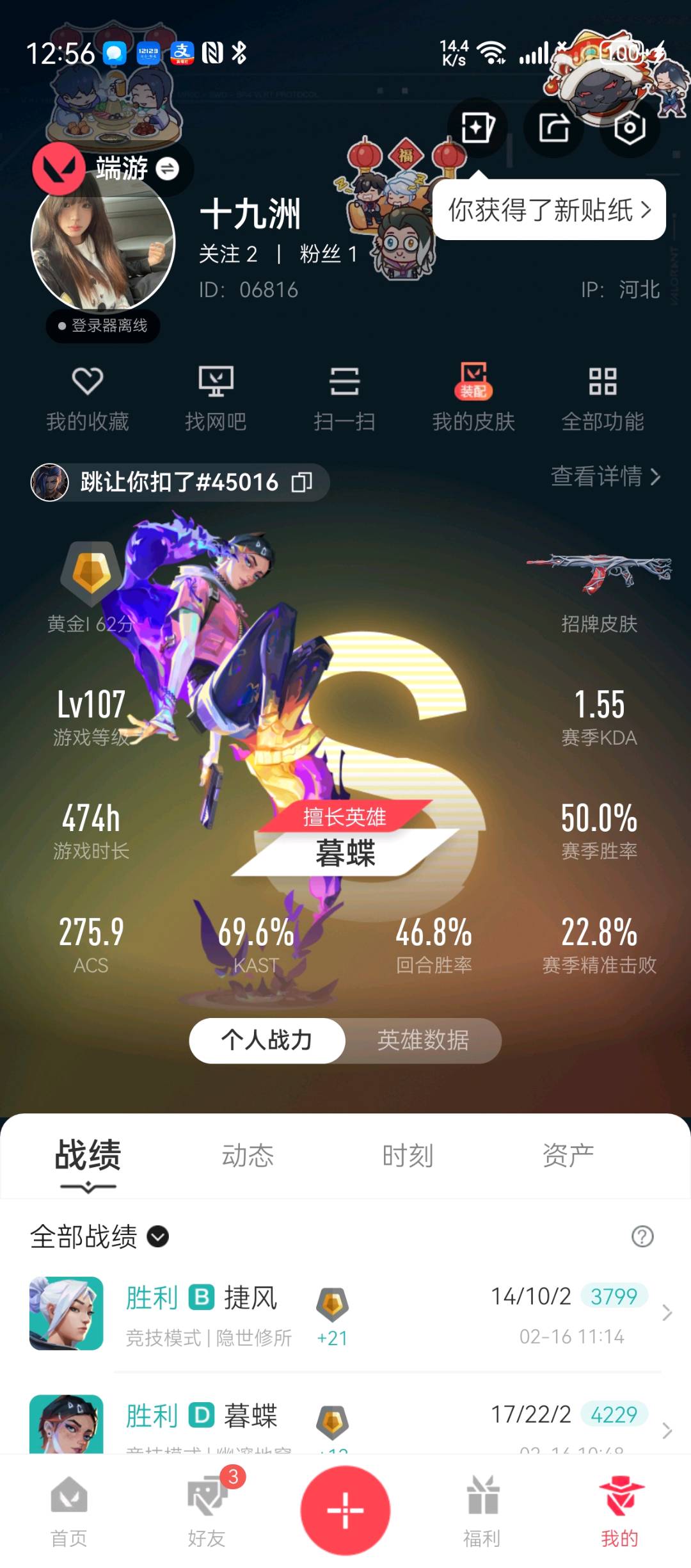• 游戏区服:无畏契约-wegame / wegame / wegame