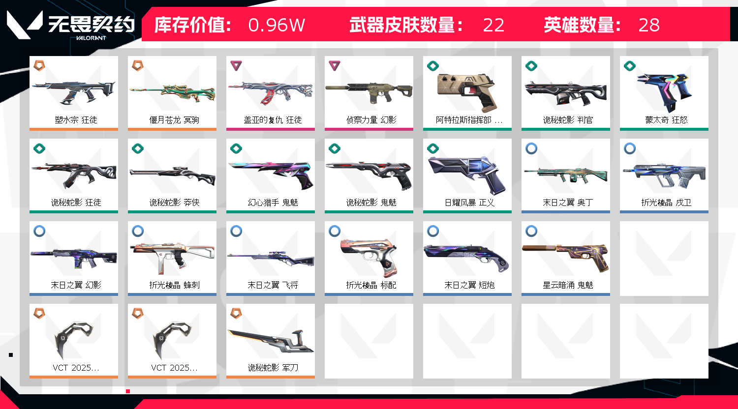 禁止参加排位 R点,王国币随便用。 禁止开挂!禁止开挂!禁止开挂!;VCT 2025 爪刀,盖亚的复仇 狂徒,侦察力量 幻影,塑水宗 狂徒,