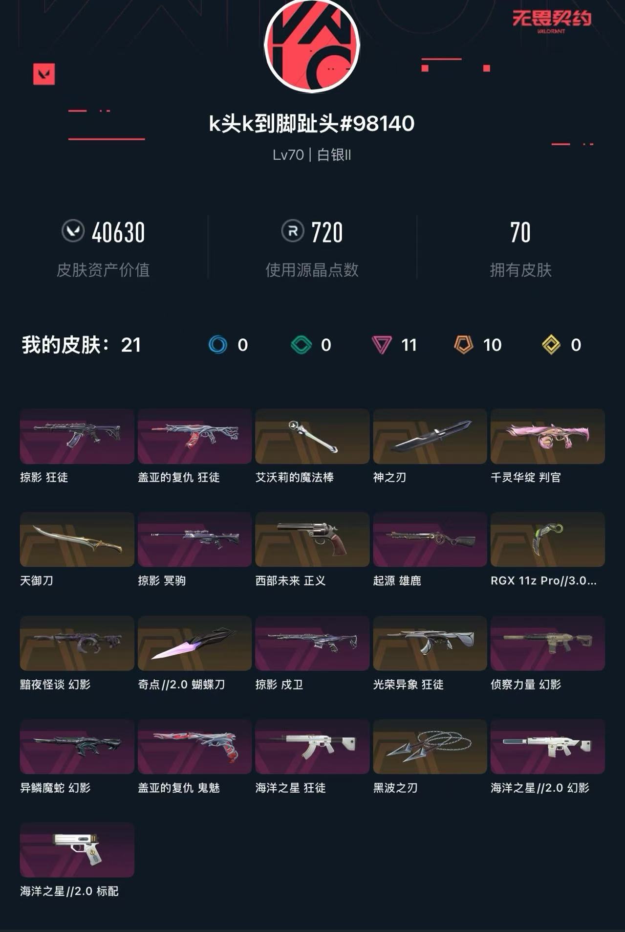 • 皮肤资产价值: 40630