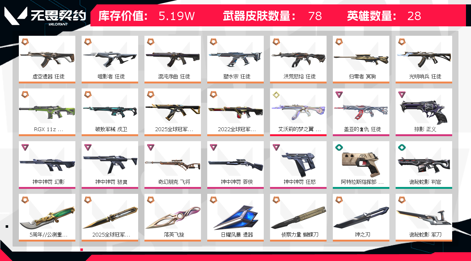 首页 > 租号大厅 > 无畏契约-wegame > wegame/wegame > 5W库/25冠军套22冠军套流脓猫猫虚空塑水狂徒神中神套樱花刀5周年刀