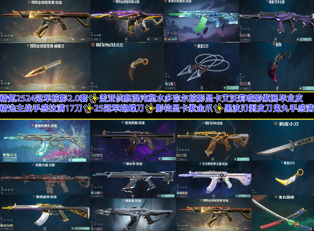 精氪2524冠军掠影2套✨盖亚侦察混沌塑水多弥尔显卡艾沃莉紫阙✨25蝴蝶刀✨影钩显卡紫金爪黑波剥皮刀