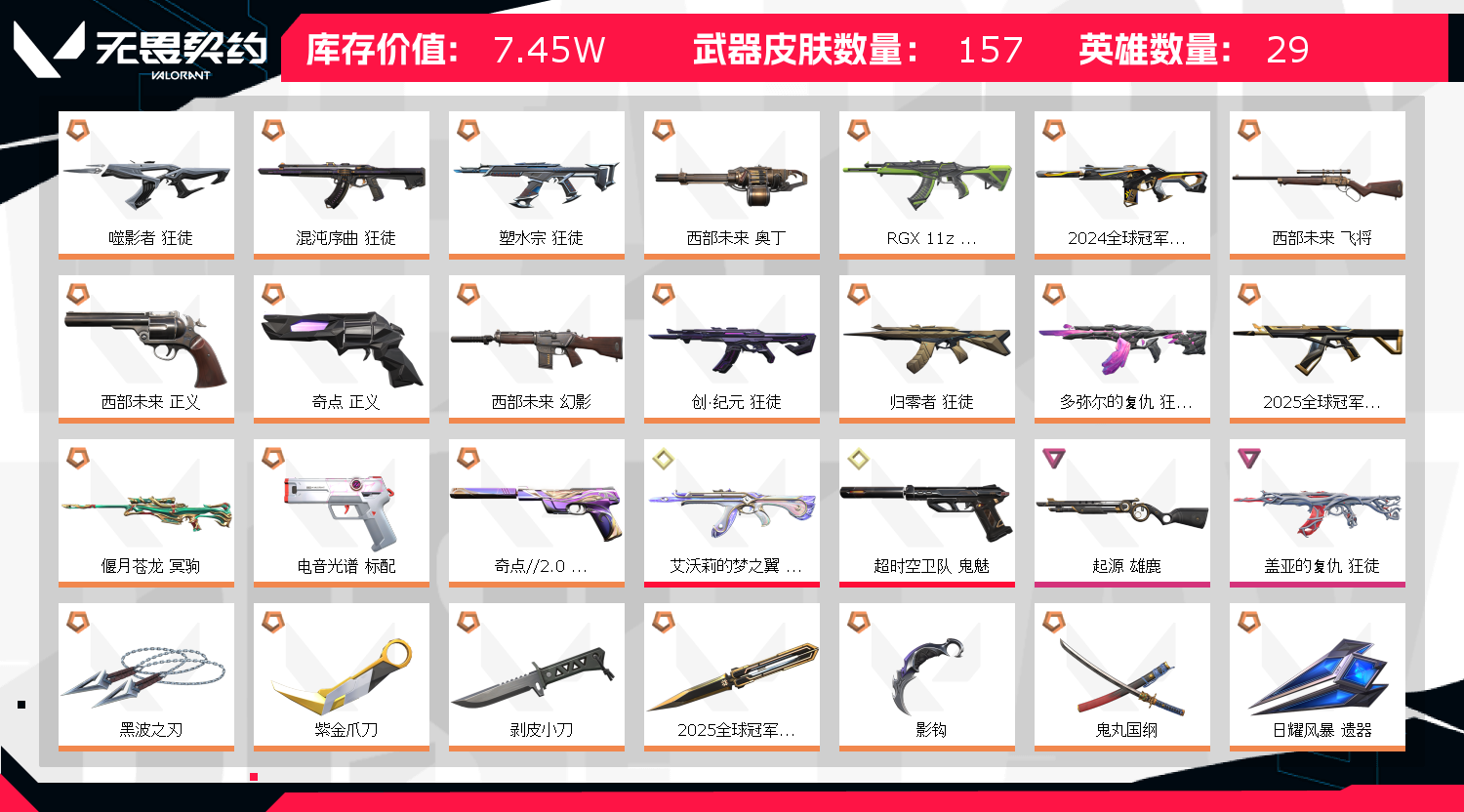 • 武器皮肤数量: 157