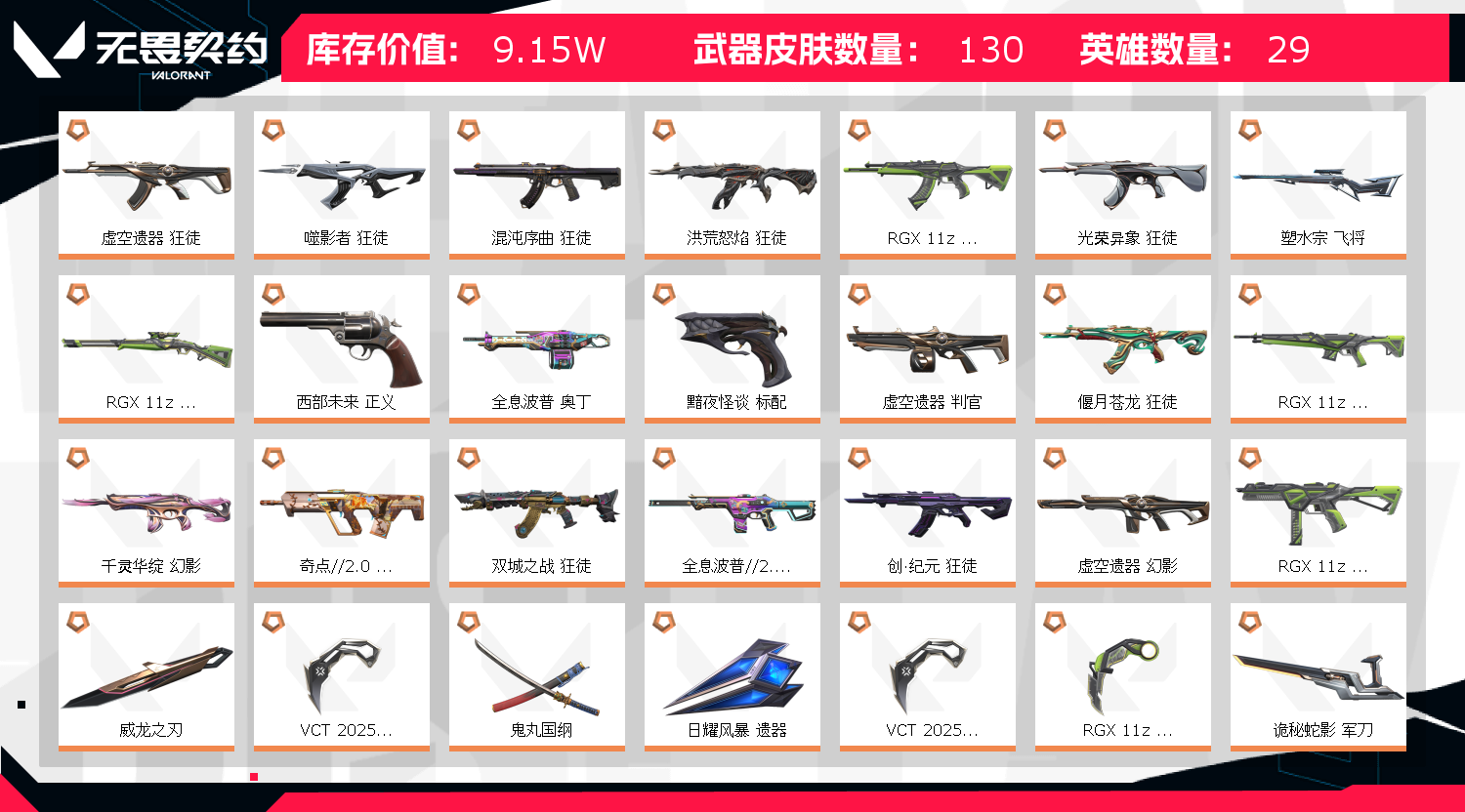 🔥黄金🔥大库存9w🔥创纪元镭切🔥双城🔥掠夺🔥假面🔥虚空🔥离子🔥VCT爪刀🔥显卡
