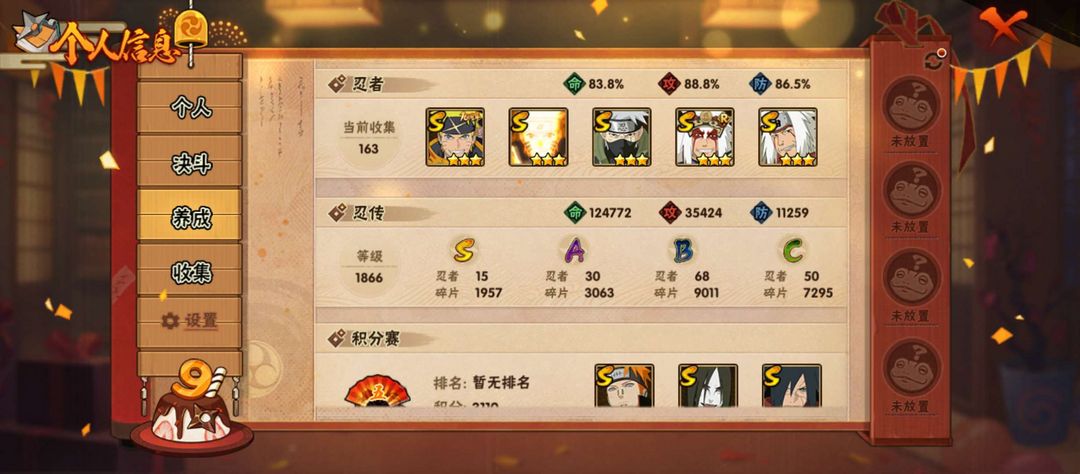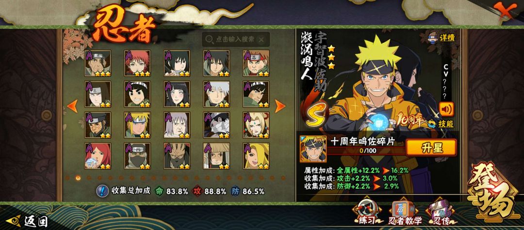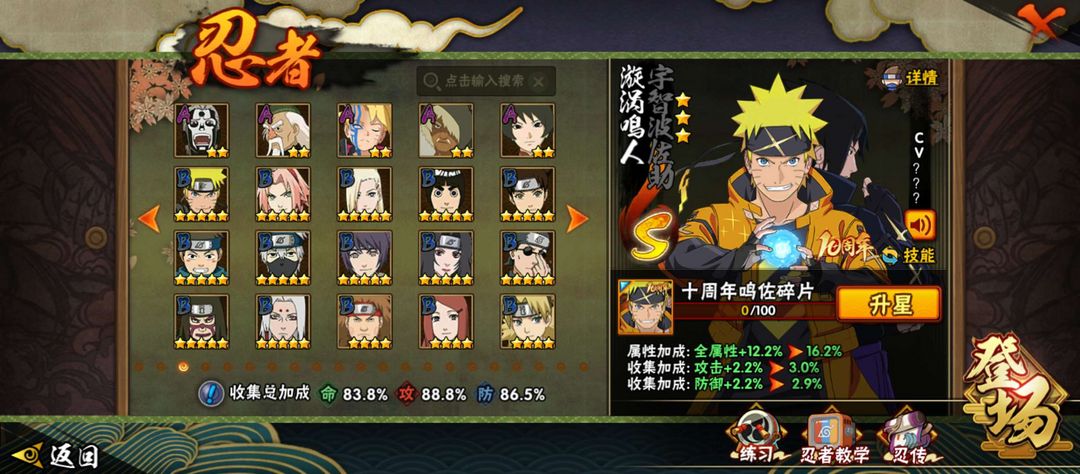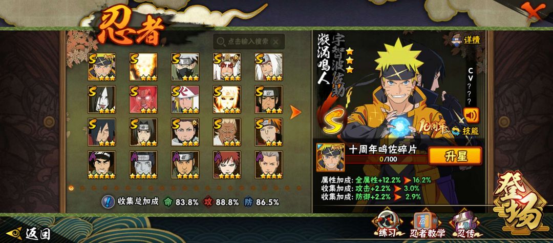 九喇嘛父子❤️初代目风影❤️十周年鸣佐❤️15S✨30A♈️163忍❤️1200w战力39魅力值V0