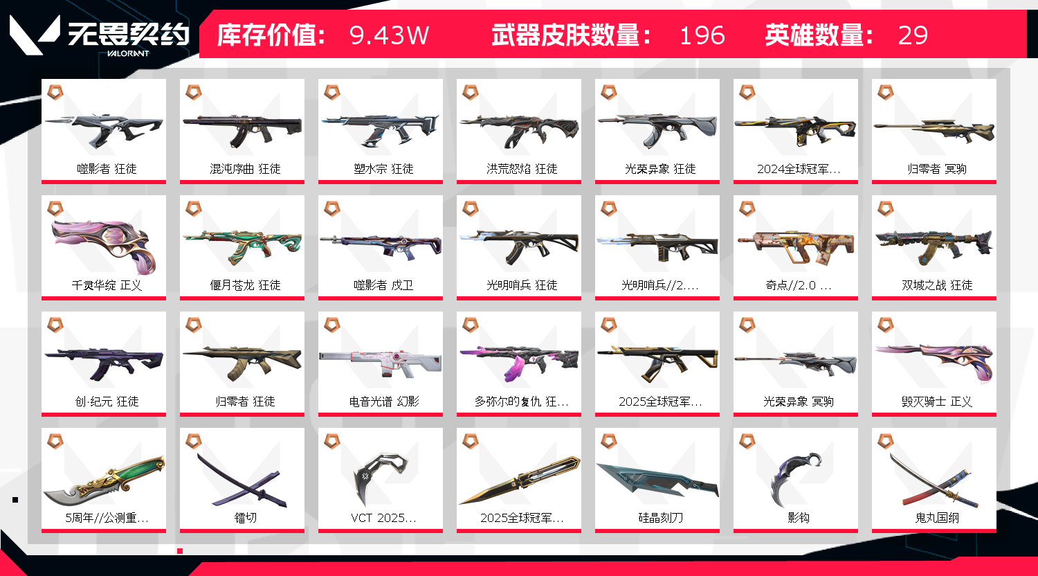• 皮肤资产价值: 94290