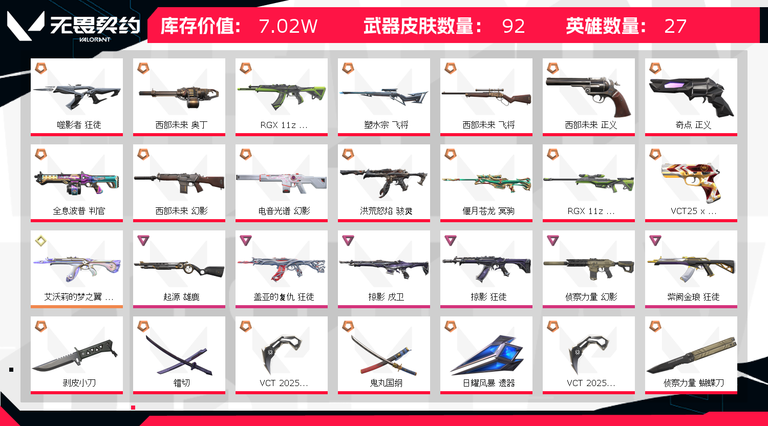 • 皮肤资产价值: 70220