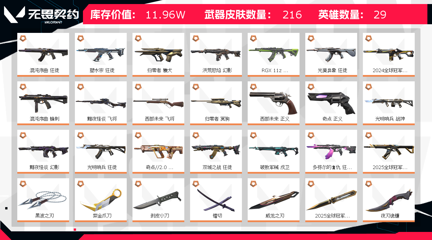 • 皮肤资产价值: 119630