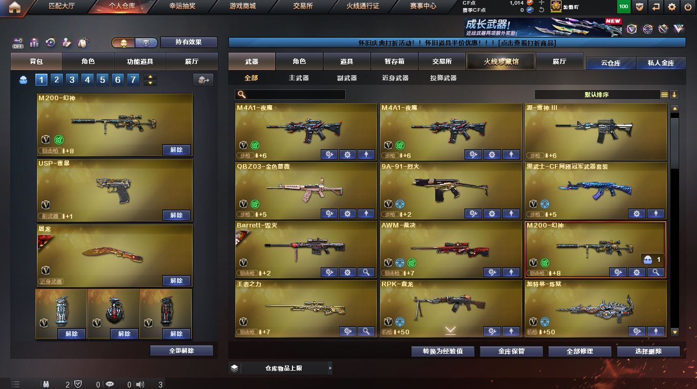【M200-幻神】【AWM-裁决】【USP-雷暴】【QBZ03-金色蔷薇】【1盘龙】【5烈龙】【2炼狱】【M4A1-雷神(2)+雷神-R.LGD-CFPLS18冠军+雷神-暗月+M4A1-雷神音效卡】【AK47-火麒麟+AK47-火麒麟音效卡】【Barrett-毁灭+毁灭-黑大圣皮肤+Barrett-毁灭音效卡】【M4A1-黑骑士+黑骑士-AG-S4冠军典藏+黑骑士-摸金校尉+黑骑士-幻能朋克皮肤+M4A1-黑骑士音效卡】【魅影/凌霄/龙儿-小淘气/铁骑荣耀】【王者之力-觉醒版/M4A1-龙血(2)/M4A1-千变(2)/M4A1-夜魔(2)/HK417-朱雀/AK12-天启(3)/黑武士-CF网剧冠军/9A91-烈火/COP-堕天神(2)/天神-CF网剧冠军/破空枪刃-夜魔/王者之啸-觉醒版/擎天-CF网剧冠军/屠龙(3)+屠龙-彼岸花皮肤/马来剑-夜魔/炼狱-悦蓝】【火麒麟-灵狐/M37-葵/迷你深渊冰龙/小飞碟-宇航兔兔】;USP-雷暴,RPK-盘龙,QBZ03-金色蔷薇,M200-幻神,