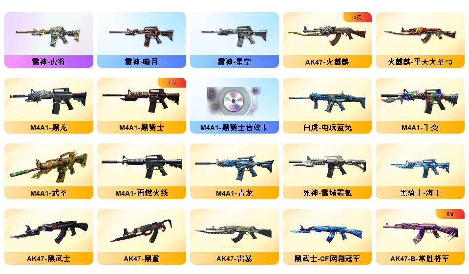 【幻影+6烈】【幻神AG-幻神电流骇客-幻神音效卡】【星神】86V,【稀有套装2】:竞技荣光套装/玄豹套装;【重要角色13】:电竞教官-云悠悠/玄豹/星际战将/隼/王者-魅影/葵-阿尔法武装/雪域霜狐/超能女侍/修道士/蜀雪/零-水下丽影/蛇隐宗/兰-限定版;【武器皮肤21】:幻神-AG-CFPLS24冠军/幻神-电流骇客/星神-枪娘默/毁灭-墨兰/天龙-CFSTAR/雷神-宇航兔/雷神-荣耀之魄/M4A1-雷神-白鲨
