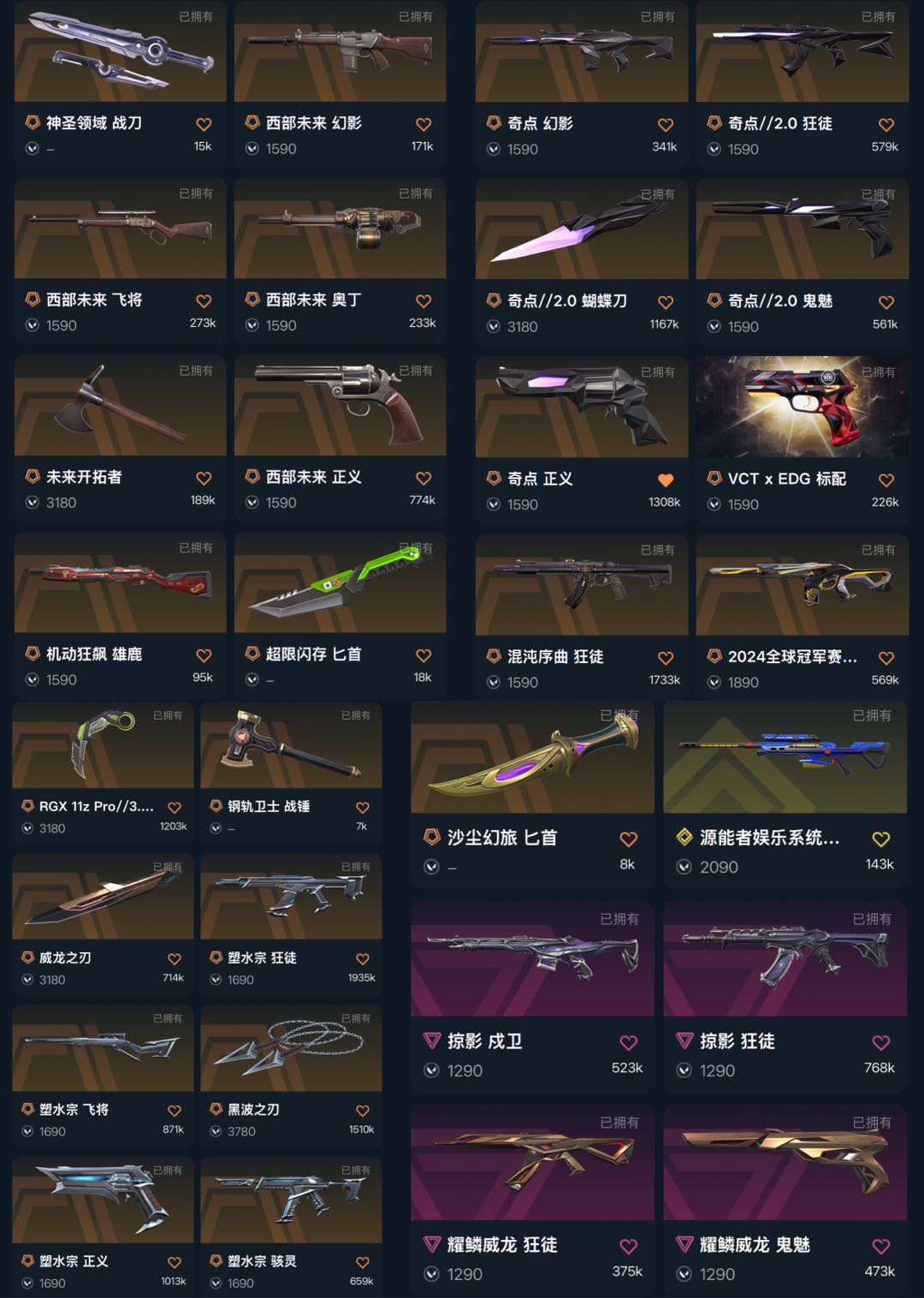 5W库/24冠军塑水套西部未来套奇点套显卡爪刀威龙刃混沌狂徒掠影戍卫