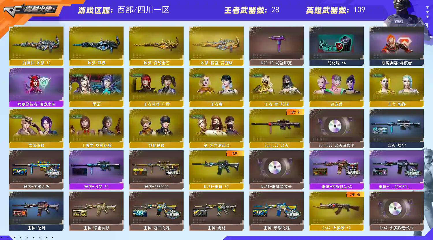 • 游戏区服:穿越火线 / 西部 / 四川一区