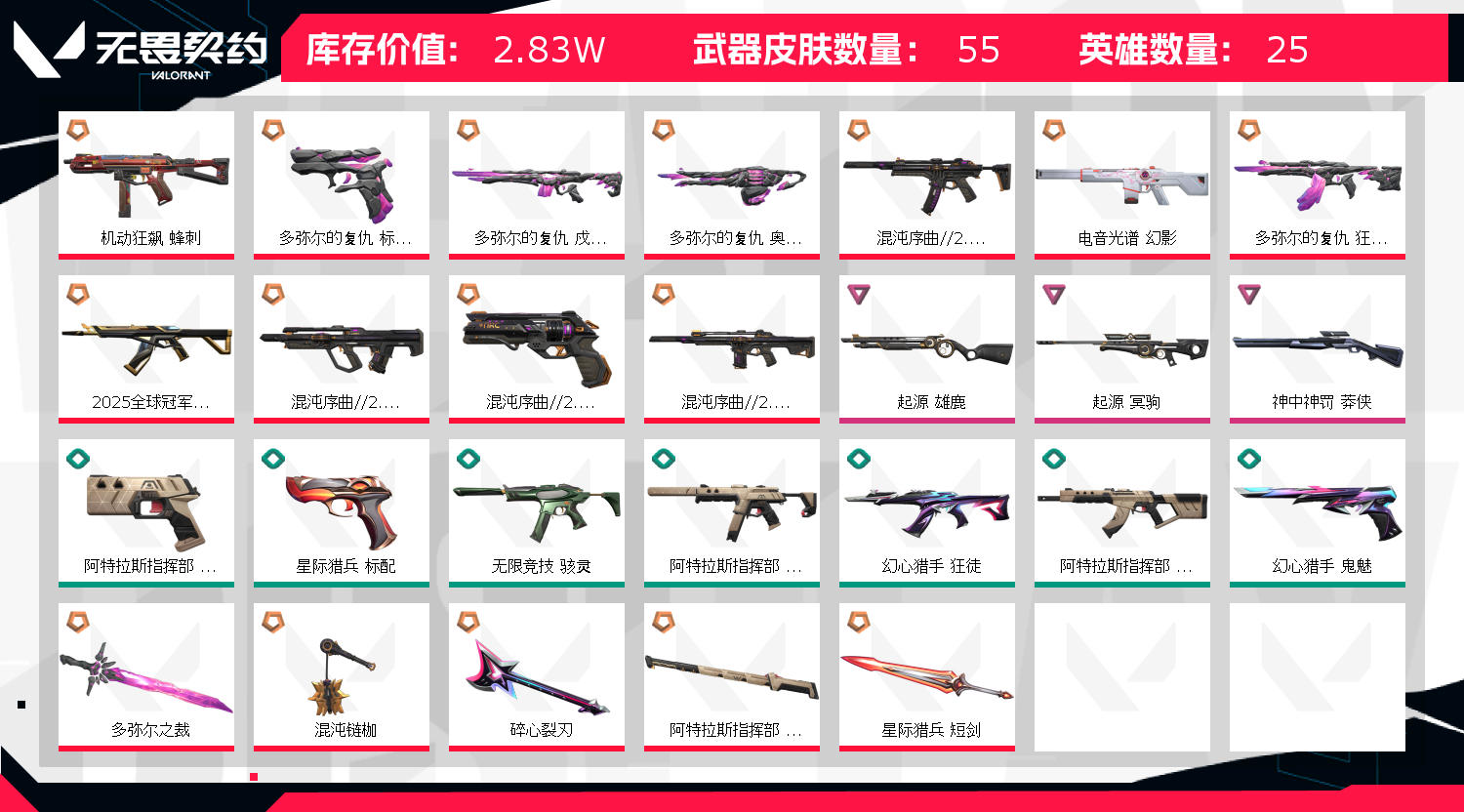 首页 > 租号大厅 > 无畏契约-wegame > wegame/wegame > 可掉分,禁止炸鱼,炸鱼直接顶号!混沌2.0套✨多弥尔套✨25冠军AK✨光谱幻影✨起源大狙、雄鹿✨盲侠