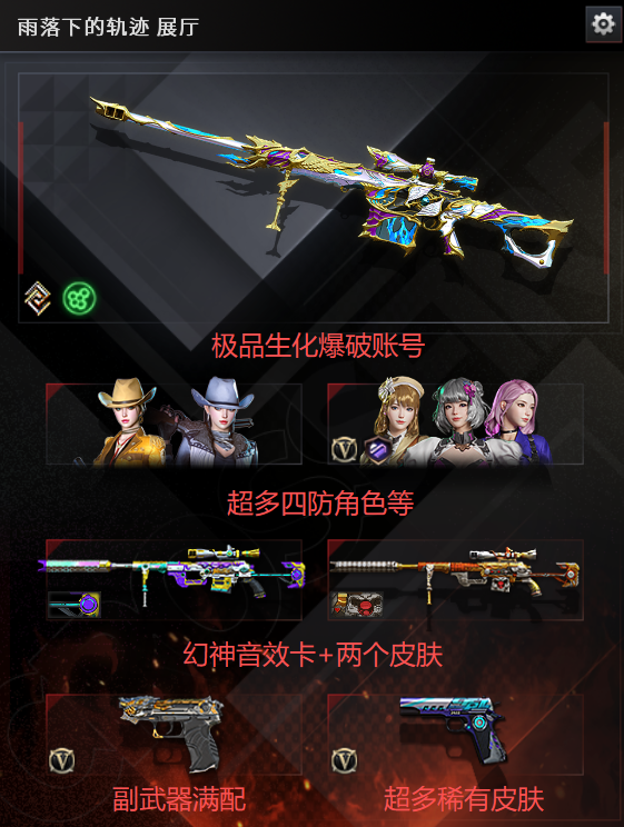 账号被冻结,秒解冻,撤单后重新下单即可! 恶意开挂,必将追责到底!本商户是多年的职业商户,请珍惜账号,违规导致账号封禁,这边会向法院起诉,法院会给平台发协助调查函提取你的身份信息,并立案调查。请文明游戏! 此号价值数十万,如有开G开辅助封号的,想想自己是否能够承担的起后果自负,由平台提供,身份信息,证据和地址进行报警处理!恶意下单维权及检测到外挂将无法再次下单! 【请租客爱护此号,当成自己号玩,喜欢请收藏,感谢】 【此号全部装备太多截不了太多图,还有很多神器未截图,普通CF点武器也是一百多个就不截图了(满背包满道具爆破、生化、挑战武器应有尽有多个玩偶主流武器多光效),主流枪械都有皮肤】 140V🔥传说圣灵+幻神三件套+双皮N9巅峰荣耀🔥王者星神+荣耀世冠+手枪满配🔥宠儿CFS赛事 详细请看下方 非账号问题请不要退款谢谢大哥!!!! 【VVIP数量】112 【重要套装】荣耀世冠、玄豹、竞技荣光等 【重要角色】审判者/_炫/_迷迭香/鹰/电竞教官-云悠悠/研/王者零-传说之路/王者-瞳-闭月羞花/王者春/王者玲珑-小乔/王者沙漠玫瑰/修道士/龙儿-小淘气/代号:翼/铁扇公主/奇洋探员/乔伊教练/新夜玫瑰/职业选手/云海玲珑/电竞少女/铁骑荣耀/葵-赛博朋克/零-水下丽影/新灵狐者/樱-青春偶像 【传说武器】传说圣灵 【英雄武器】_M200-幻神/Barrett-毁灭/Barrett-极光/Barrett-暗月传说/王者星神-觉醒版/AWM-裁决/M4A1-雷神/荣耀世冠-雷神/黑骑士-海王/M4A1-猎神/白虎-电玩蓝兔/AK47-火麒麟(2)/荣耀世冠-火麒麟/无影-神兵利器/AK-47-猩红传说(2)/AK47-B-身先士卒/AK47-B-常胜将军/AK47-B-战士/AN94-超新星/QBZ03-金色蔷薇/QBZ-03-王者蔷薇-觉醒版/烈火-动感闪耀/RPK-盘龙/加特林-炼狱(2)/COP-堕天神(2)/王者之灵-觉醒版/天神-动感闪耀/沙鹰-天神(2)/沙鹰-修罗/破空枪刃-夜魔/柯尔特-竞技荣光/USP-雷暴/麒麟刺/麒麟刺-堕天神/王者之刺-觉醒版/龙啸/龙啸-堕天神(2)/王者之啸-觉醒版/擎天/擎天-竞技荣光/王者之击-觉醒版/屠龙-动感闪耀/屠龙(2)/幻灵之锋/王者之锋-觉醒版/雷霆王者之锋-觉醒版/马来剑-夜魔/手雷-动感闪耀/高爆手雷-云龙/高爆手雷-幻灵(4)/高爆手雷-夜魔(4)/高爆手雷-堕天神(4)/高爆手雷-竞技荣光/烟雾弹-幻灵(2)/烟雾弹-夜魔(4)/烟雾弹-堕天神(4)/烟雾弹-竞技荣光/烟雾弹-雷霆王者-觉醒版/闪光弹-云龙/闪光弹-幻灵/闪光弹-夜魔(4)/闪光弹-堕天神(4)/闪光弹-竞技荣光/闪光弹-雷霆王者-觉醒版(2)/超新星-热带奇洋/黑武士-锦绣游龙/王者火魄-觉醒版/Barrett-碧霄极光/丛林匕首-玄豹/龙啸-热带奇洋/高爆手雷-玄豹(2)/烟雾弹-玄豹/闪光弹-玄豹/手雷-热带奇洋 【王者武器】 【小人枪】火麒麟-零·纪元/M4A1-雷神-精英刀锋/C.A.T/AWM-灵狐-15周年嘉年华/天龙-曼陀罗/巴雷特-零-水下丽影/夺魂/黄金迷你深渊冰龙/迷你深渊冰龙/迷你白狐/魔能飞环-曼陀罗/小飞碟-宇航兔兔(2)/迷你波特博士(2) 【其他重要武器】火麒麟-暗月/火麒麟-能量核心/冰龙粉碎者-白马银枪/黄金AK-47/AK47-B-十周年(3)/AK-12-恶棍/M4A1-圣诞2021(2)/M4A1-电音/AK47-盛典-CFS 2022/AK47-齐天大圣(2)/AK47-大帝林肯/M4A1-PINK/红龙AK47/M4A1-肯德基/M4A1-紫狱/AK-47-A-波特博士/Scarlight-炫彩/雷神-赛博幻想/M14EBR-赤血龙魂/M4A1C-死亡之翼/AK-12-CFS2017纪念版(2)/QBZ03-吕布/M4A1-Guitar 炫彩/AK47-破空冰刃(2)/M4A1-樱/神罚/M200-朋克/AWM-十周年/M200-枪王排位/AWM-恶棍/M82A1-飞龙在天(2)/AWM-银月/M82A1-水枪/Barrett-捣乱兔兔/AWM-Pink/M200-青花瓷(2)/M200-落樱/M200-萌杀/M200-神秘黑洞/巴雷特-情人节2020/M200-青帝/Barrett-孔明/Barrett-战龙/Barrett-苍龙/M200-圣诞/AWM-A/末日裁决者/KAC-小动物/KAC-情人节2021/KAC-赤烛/暴君乱世-超越Max/EVOIII-萌杀(3)/斯太尔-能量核心/神圣爆裂者-末日III/Spas-12-幻能朋克/AA-12-圣龙/Spas-12-黑金/阐释者III/Colt1911-彩蝶/COP-机甲刑天/COP-金蝉子-枪王排位/幻影Anaconda-枪王排位/幻影沙鹰-枪王排位/沙鹰-枪王排位(2)/Anaconda-雷电核心/新USP-枪王排位奖励(2)/愤怒的公牛-朋克/mac-10-蒸汽钟表/COP 357-青龙/愤怒公牛左轮-枪王排位/COP 357--绚樱/MAC-10-涂鸦(2)/柯尔特-百城/毛瑟-庆典-CFS 2021/COP357-圣诞2021/Anaconda-炽焰核心/USP-黑大圣/凤凰之灵/凤凰之火/金刚伞-电玩红兔/Laser Sword-夏日/幻影双斧-枪王排位/幻影扳手-枪王排位/招财猫-枪王排位/荣耀之证-枪王之王(2)/蝴蝶刀-枪王排位/军用手斧-能量核心/不灭之拳(2)/尼泊尔-炎龙/斩神刀-青帝/黄金猫猫手套-白鲨/猫猫手套/收割者-枪王排位/生化手雷-小钢(2)/灵狐娃娃手雷/惨叫鸡高爆手雷(3)/胜利奖杯手雷-枪王排位(2)/胜利奖杯闪光弹-枪王排位/迷你生化手雷/幽灵宝宝手雷/生化手雷-机甲核心/闪光弹-枪王排位(3)/手雷-能量核心/惨叫鸡手雷-惨叫迹/胜利奖杯烟雾弹-枪王排位/高爆手雷-大乔/闪光弹-貂蝉 【重要武器皮肤】M200-幻神-N9-2022MVP/幻神-巅峰荣耀/火麒麟-AG战队皮肤/火麒麟-CFSTAR/火麒麟-华夏之心/火麒麟-心动糖果/火麒麟-百城/AK47-B-常胜将军-刘备/AK47-B-常胜将军-孙权/M4A1-千变-孔明皮肤/雷神-源计划2.0专属 皮肤/M4A1-雷神-CFS 2019/雷神-宠儿-2019MVP/雷神-宇航兔皮肤/雷神-烈虎皮肤/战神-紫绶金章皮肤/战神-粉色甜心皮肤/修罗-星空/修罗-CFSTAR/麒麟刺-萌杀皮肤/屠龙-荣耀之锋/屠龙-星火燎原/擎天-秘银/龙啸-冠军之啸 【重要光效】王者星神原始光效/雷霆王者之锋光效/王者之锋紫色光效/王者之锋金色光效/王者之啸紫色光效/王者之