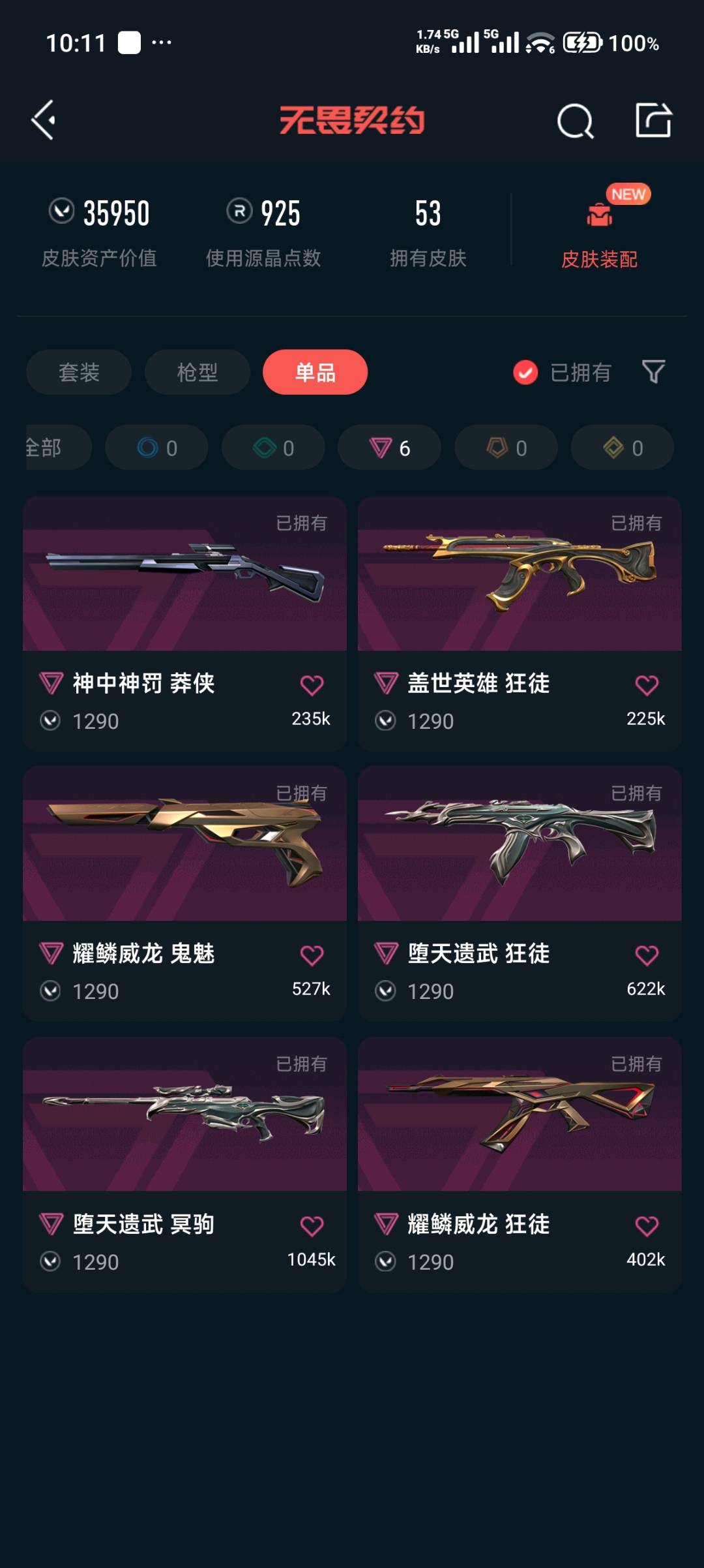 • 皮肤资产价值: 35950