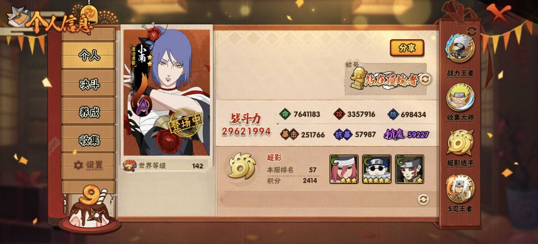 • 火影段位: 当前赛季无