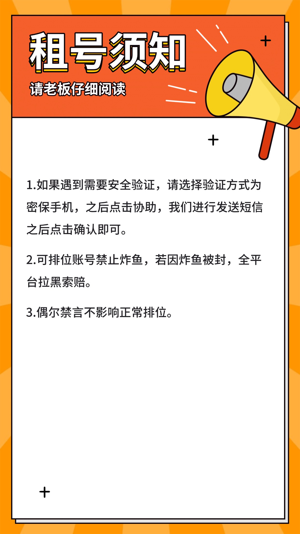 • 租号限制:起租时间3小时,租号0次及以上才可租用此号