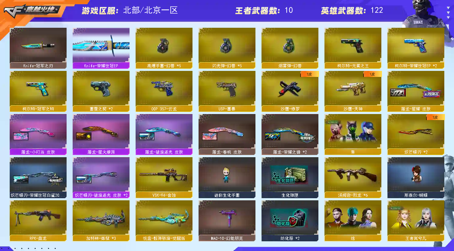 • 游戏区服:穿越火线 / 北部 / 北京一区