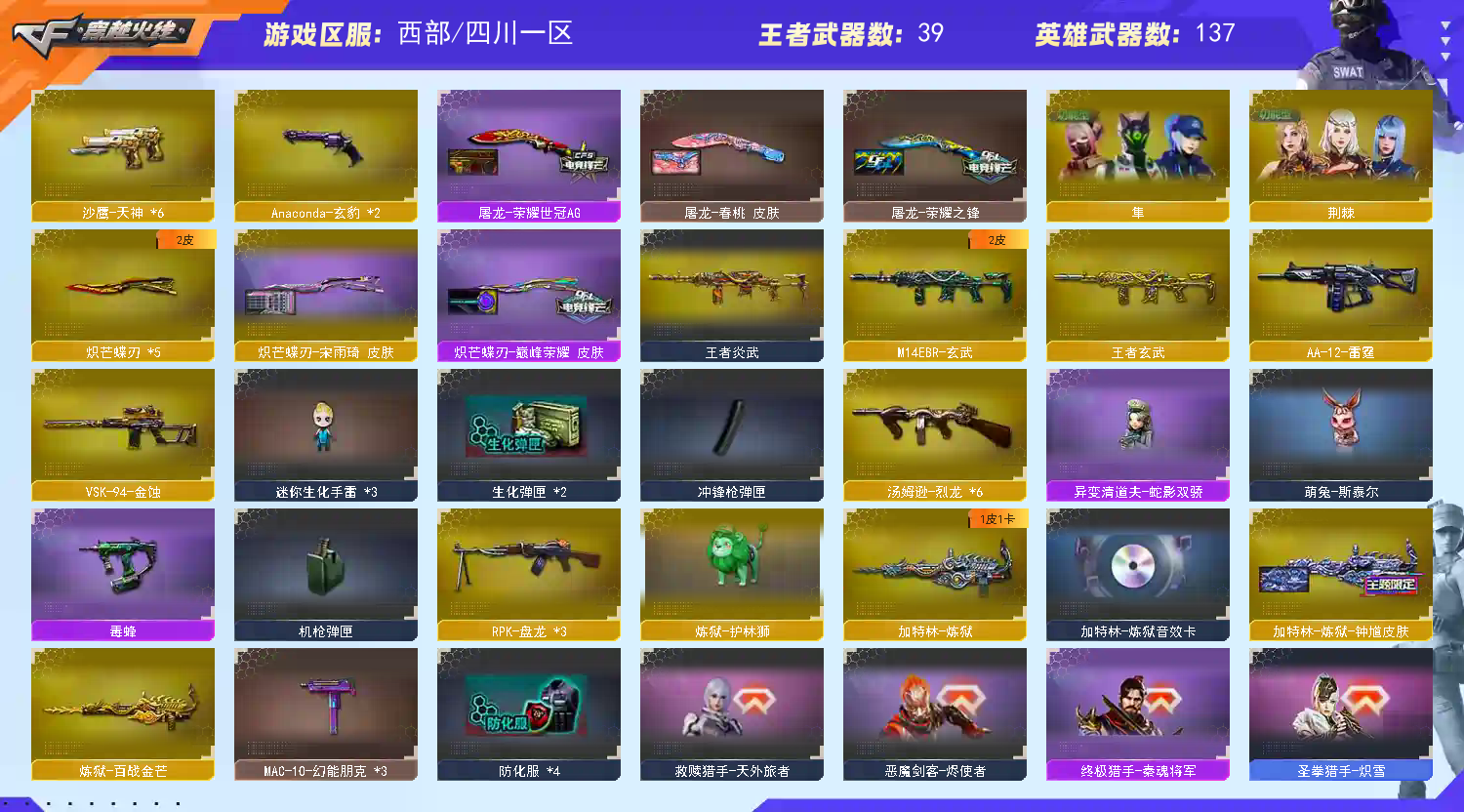 • 游戏区服:穿越火线 / 西部 / 四川一区