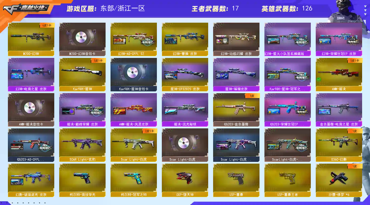 【幻神6皮+卡】118v-幻神-幻神电竞之星-幻神星火-幻神荣耀世冠ep-幻神曹操-幻神动感闪耀-幻神AG24-幻神音效卡-星神-cfs2025-冠军之星-璀璨-竞技荣光套装-冠军之特-幻影-玄豹-qbz金色蔷薇-朱雀电竞之星-白虎电玩蓝兔-王者凌虎-毁灭-裁决-cop王者堕天神-usp雷暴-冠军之特-柯尔特竞技荣光-屠龙-擎天-麒麟刺-云悠悠-玄豹-隼-裁决音效卡-黑骑士音效卡-火麒麟音效卡-毁灭星耀-qbz荣耀世冠ep-雷神十周年-qbz电竞之星-裁决巅峰荣耀-qbzAG-白虎暗星-毁灭sv-战神张飞-战神赵云-荣耀之魄-冠军之虎-荣耀之怒 请看截图 喜欢请点收藏 方便下次租 可以当成自己号玩【感谢老板租此号】优质账号 如果有个别装备到期 影响不大的情况下请不要维权,如遇到账号密码错误 顶号 冻结 请直接维权即可, 科技大佬麻烦看了请绕道,出zu不易,给你跪下了!;USP-雷暴,USP-雷暴王者,柯尔特-冠军之特,炽芒蝶刃,隼,电竞教官-云悠悠,QBZ03-金色蔷薇,