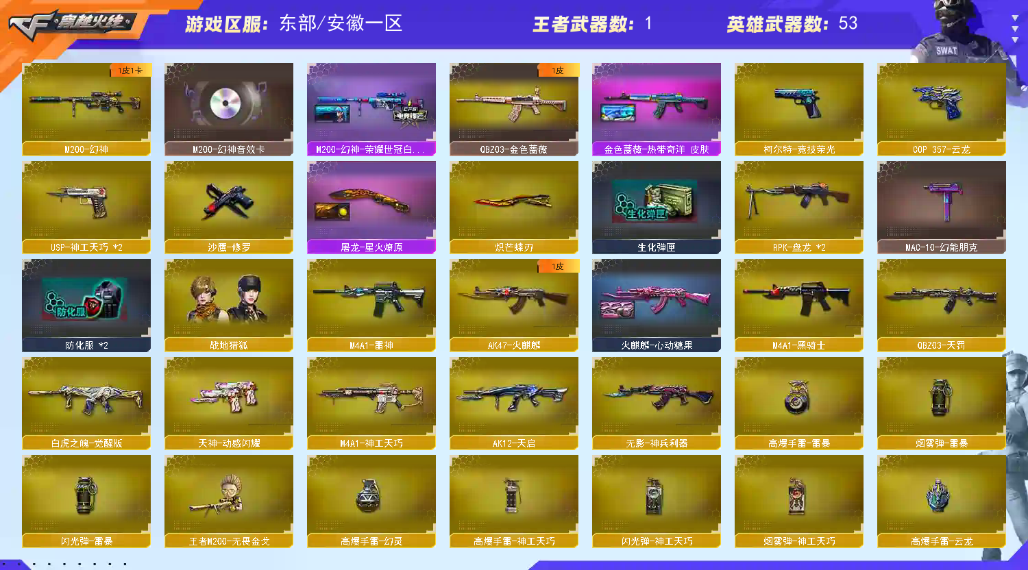 • 游戏区服:穿越火线 / 东部 / 安徽一区
