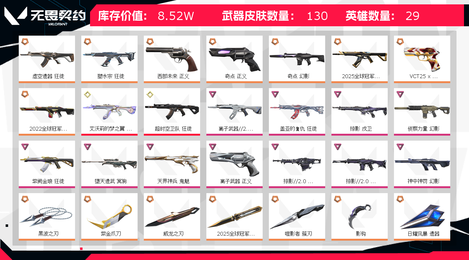 • 皮肤资产价值: 85230
