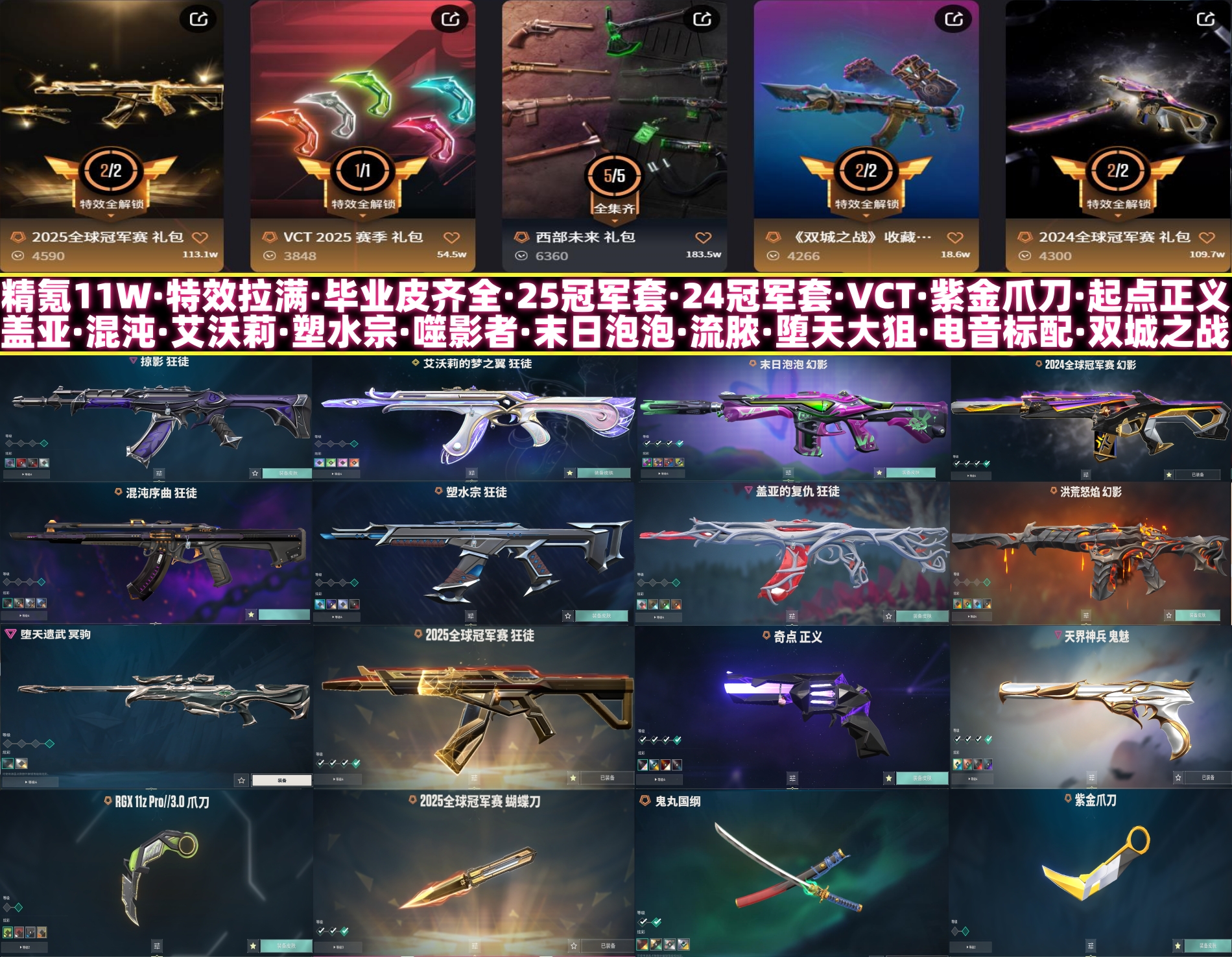 精氪11万毕业皮齐全极品神装2425冠军套VCT显卡紫金爪刀起点正义✅盖亚混沌艾沃莉艾沃莉✅末日泡泡