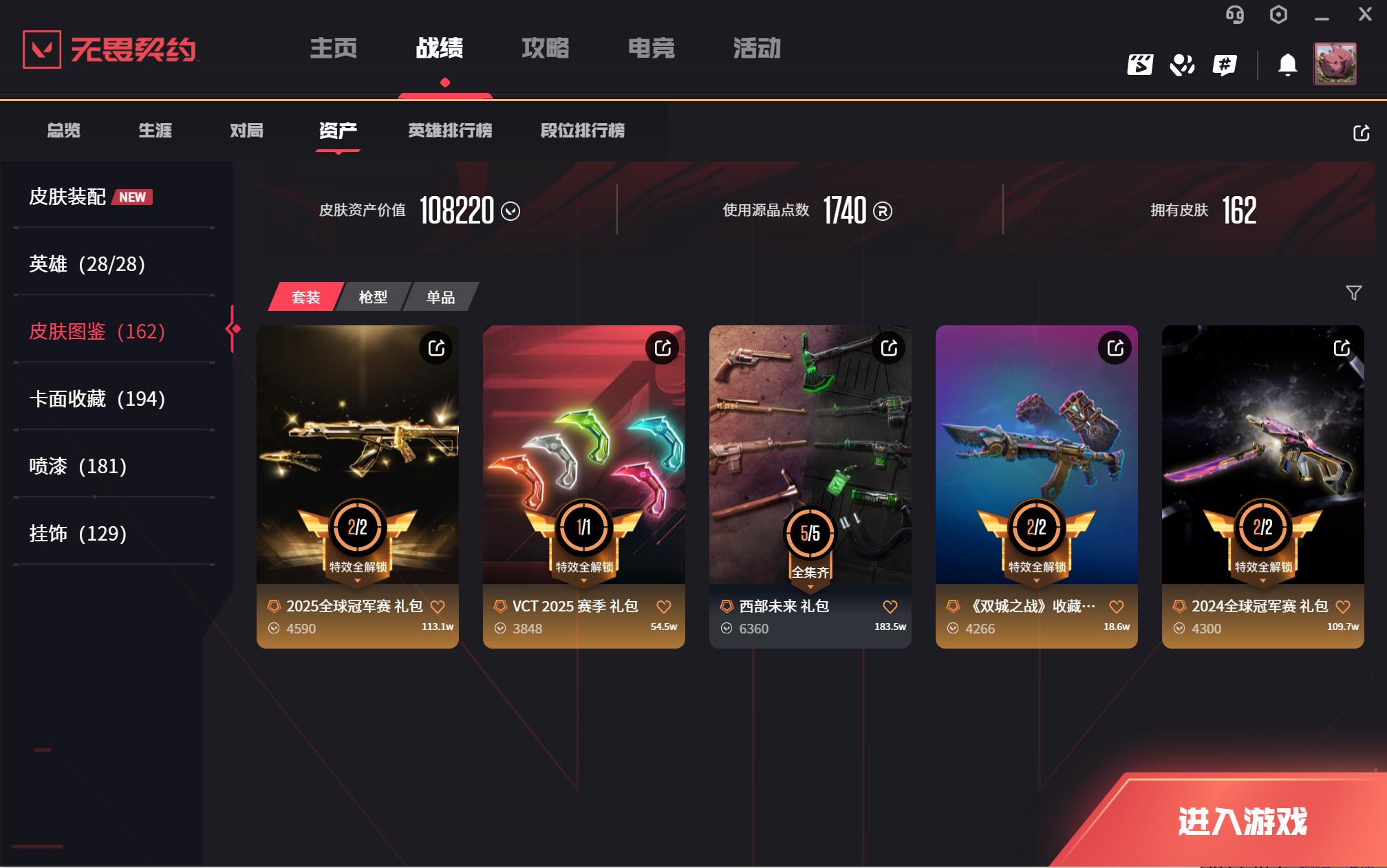 • 皮肤资产价值: 108220