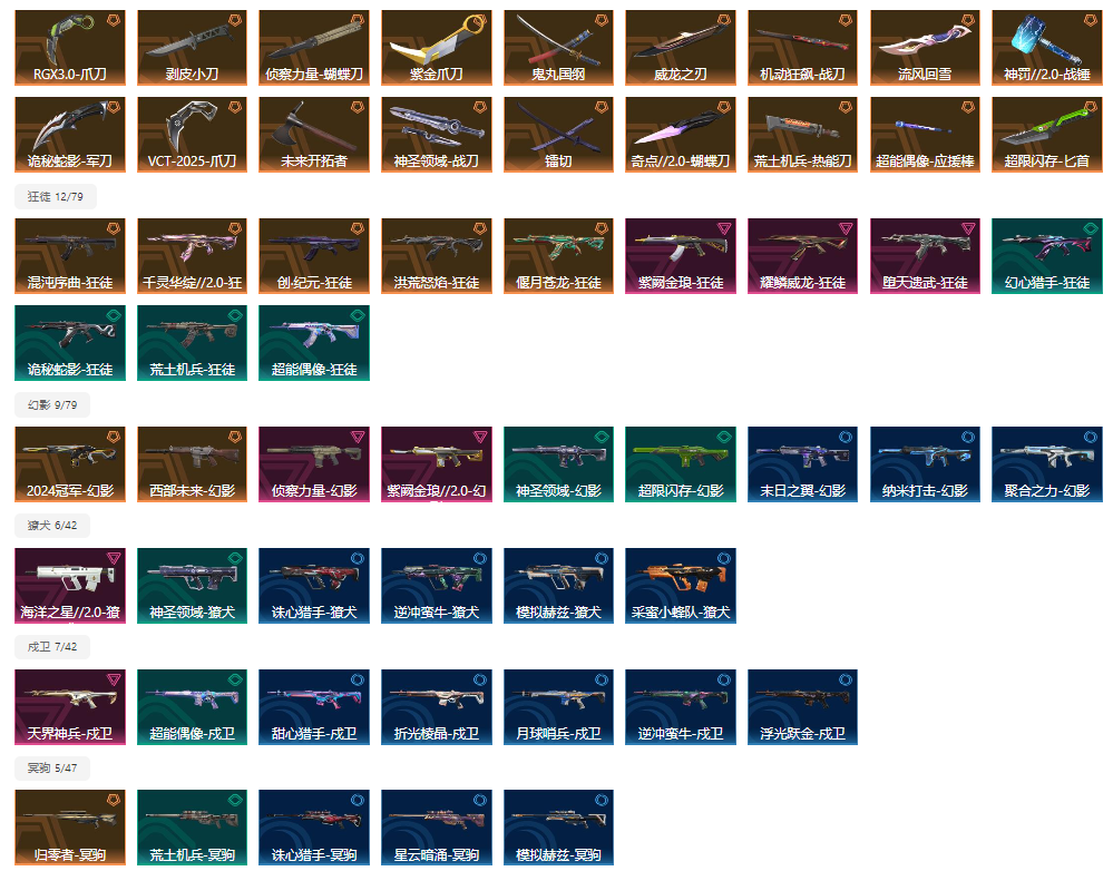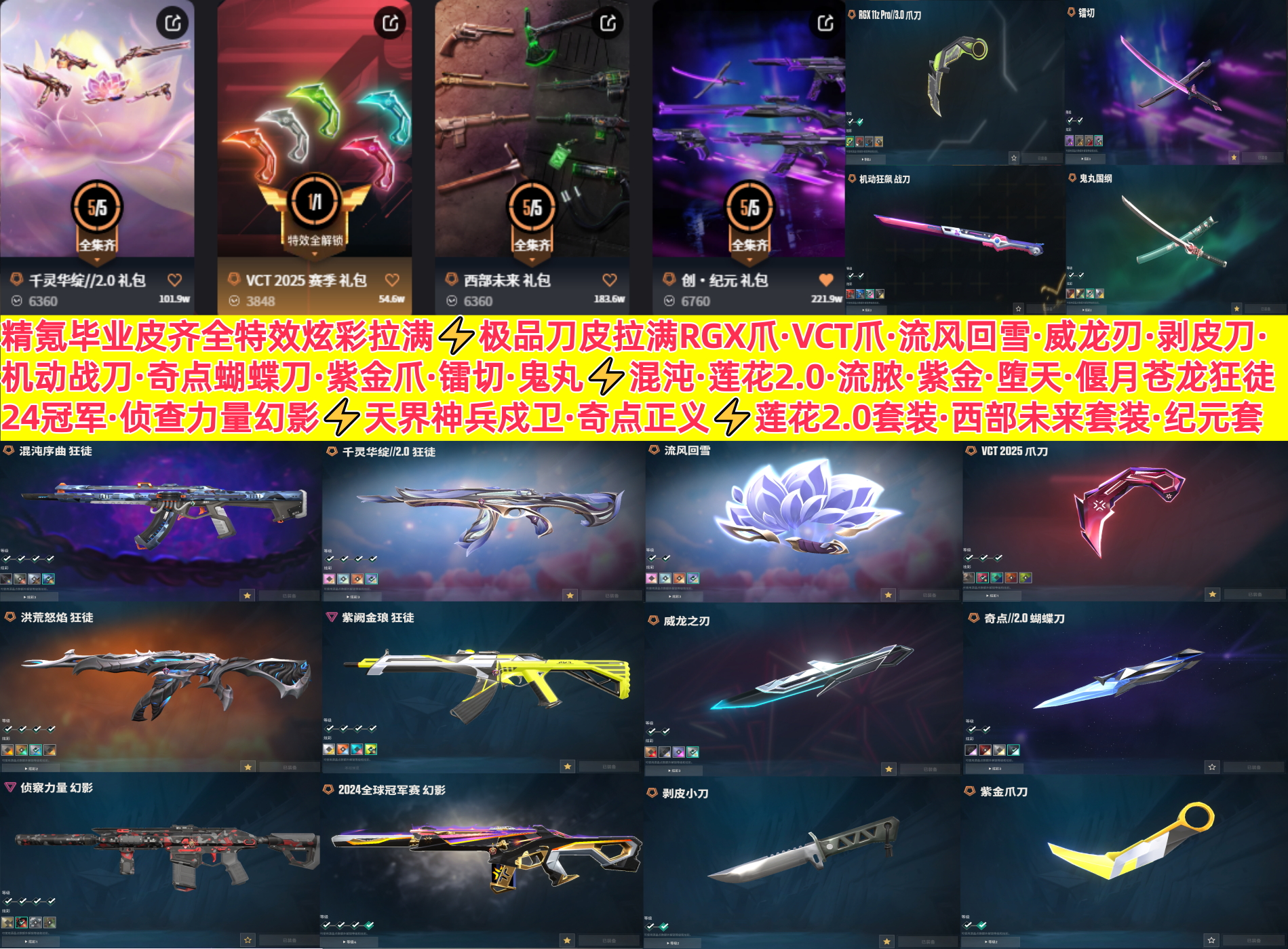 精氪毕业皮齐全特效炫彩拉满⚡莲花2.0套RGX威龙VCT剥皮蝴蝶刀⚡混沌流脓紫金ak24冠军侦查幻影