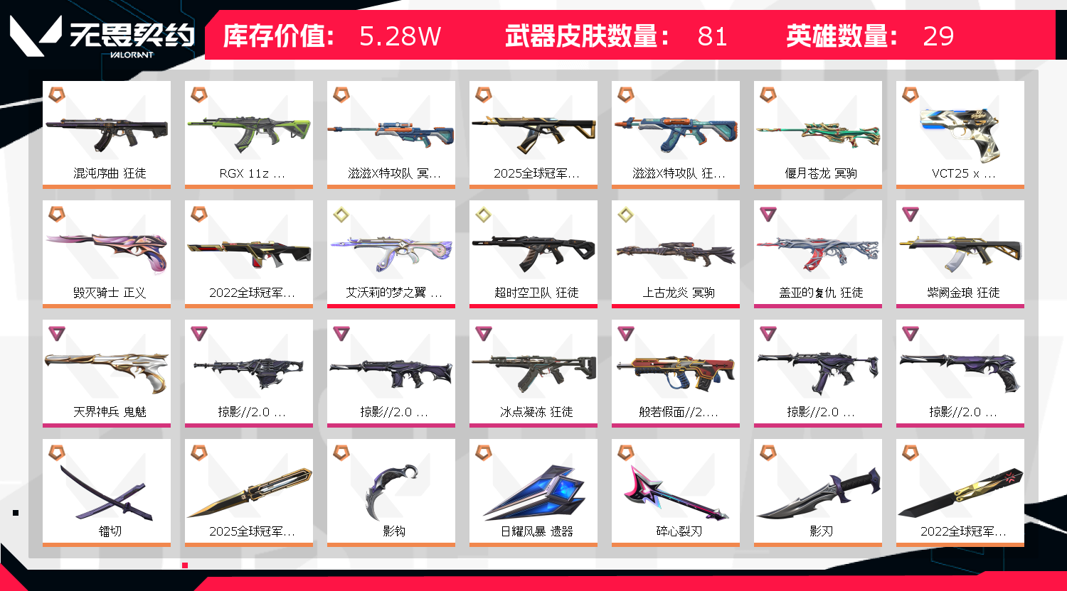 • 皮肤资产价值: 52760
