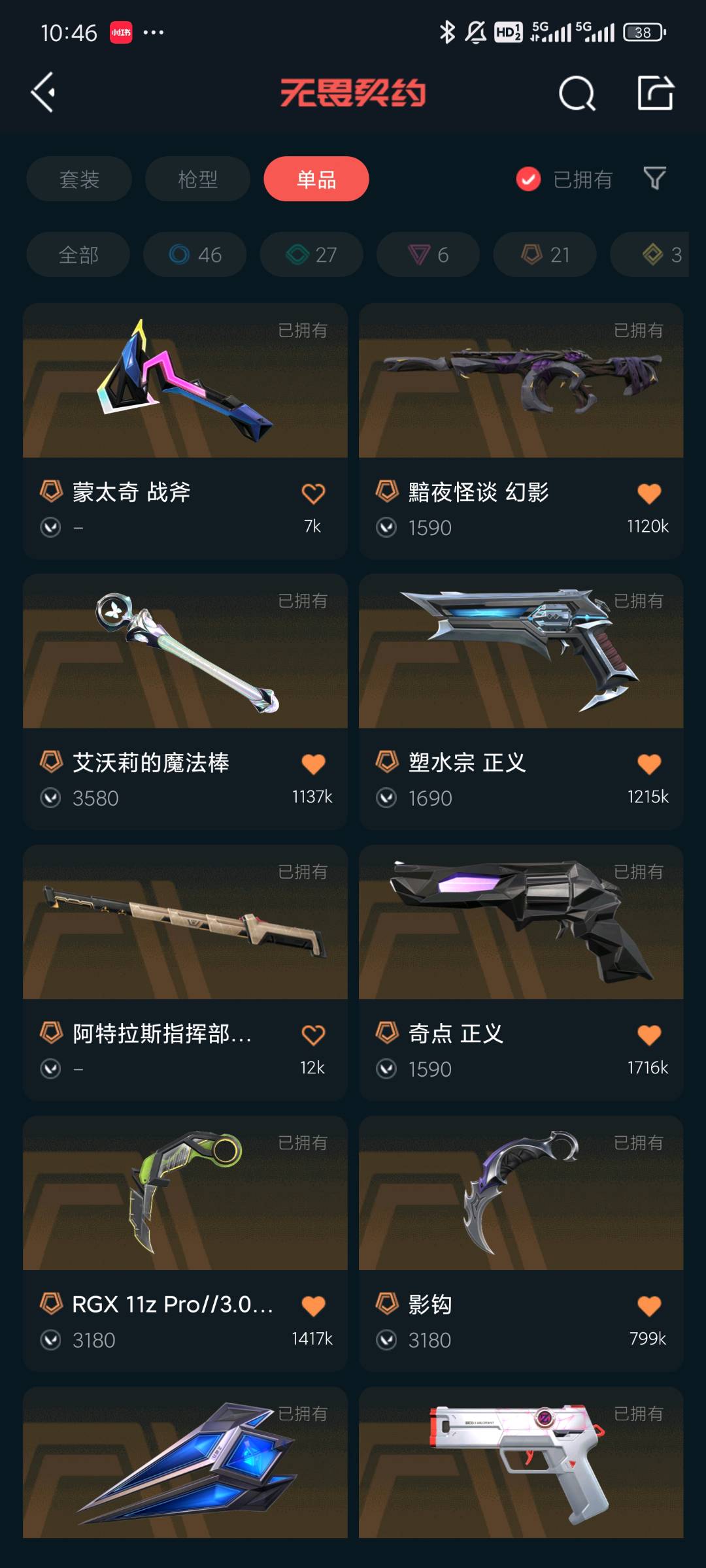 价值45720/铂金/显卡爪刀影钩魔法棒/奇点塑水正义/盖亚雄狮混沌猫猫紫金塑水狂徒/堕天冥狙