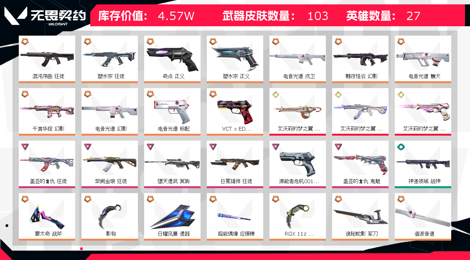 • 武器皮肤数量: 103