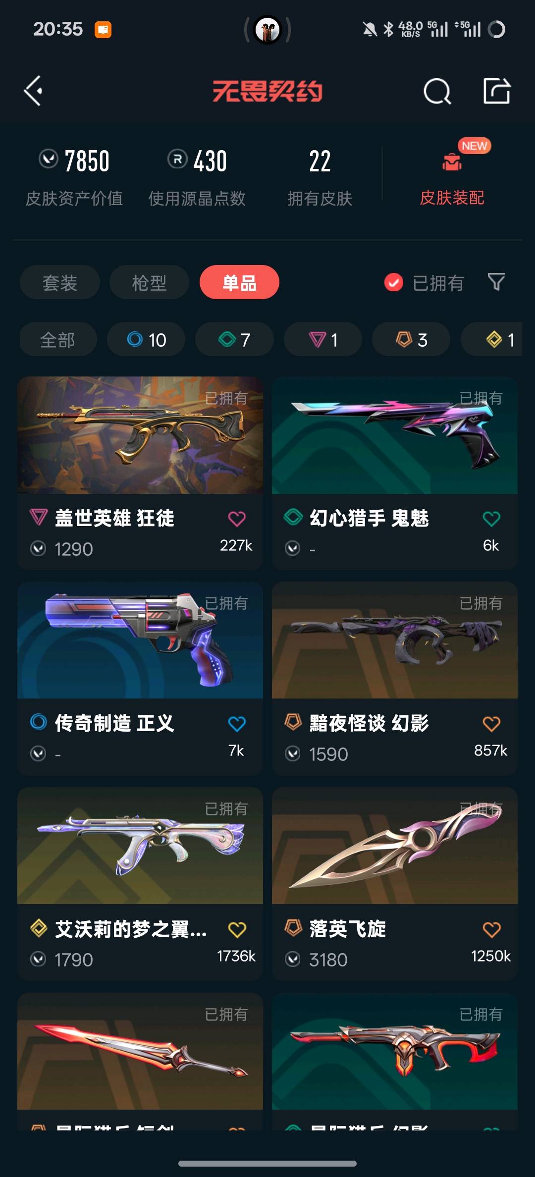 • 皮肤资产价值: 7850