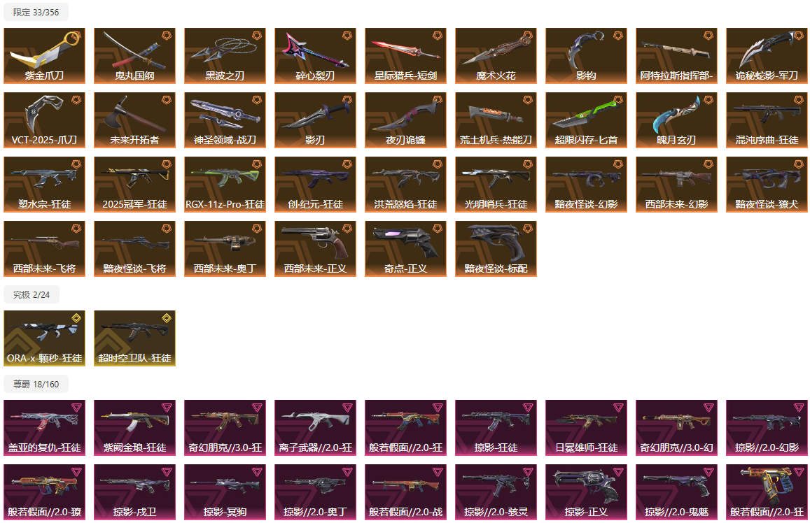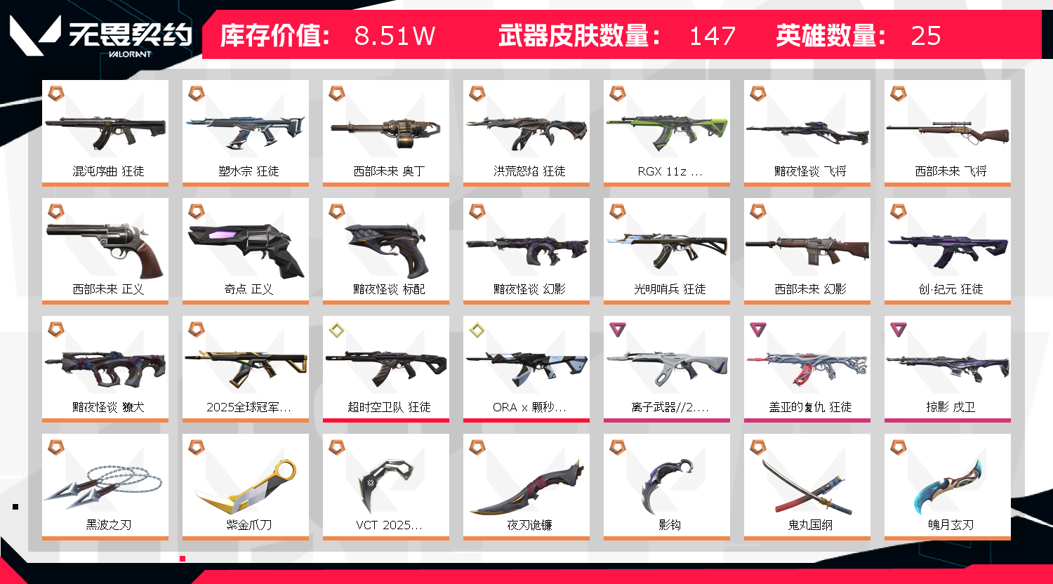 首页 > 租号大厅 > 无畏契约-wegame > wegame/wegame > 25冠军盖亚ORA颗秒朋克3超时空RGX狂徒混沌塑水流脓⚡魔术火花紫金VCT爪影钩黑波刃特效炫彩拉满