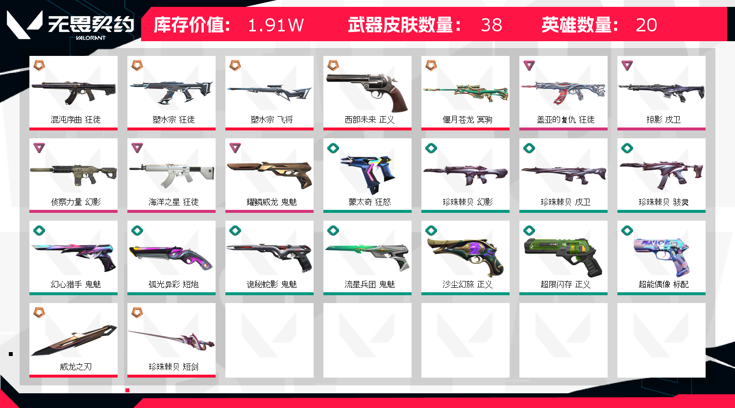 • 皮肤资产价值: 19070