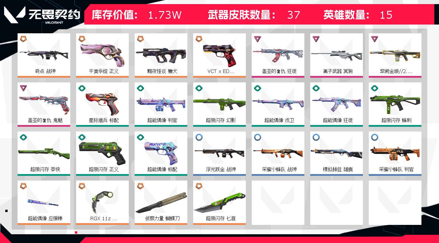 • 武器皮肤数量: 37
